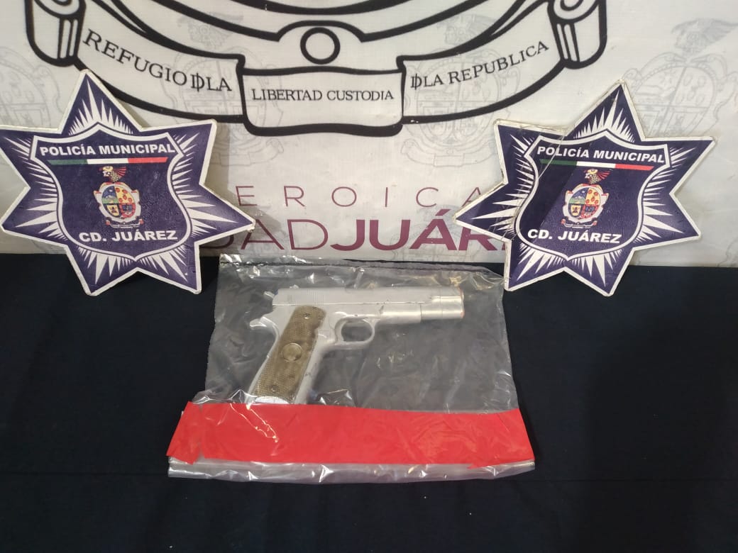 Con los datos obtenidos se implementaron acciones de búsqueda localizando metros más adelante a dos sujetos que reunían las características, por lo que fueron abordados y al realizarles una inspección preventiva les localizaron una réplica de un arma de fuego tipo escuadra la cual resultó ser de juguete, procediendo a su detención.