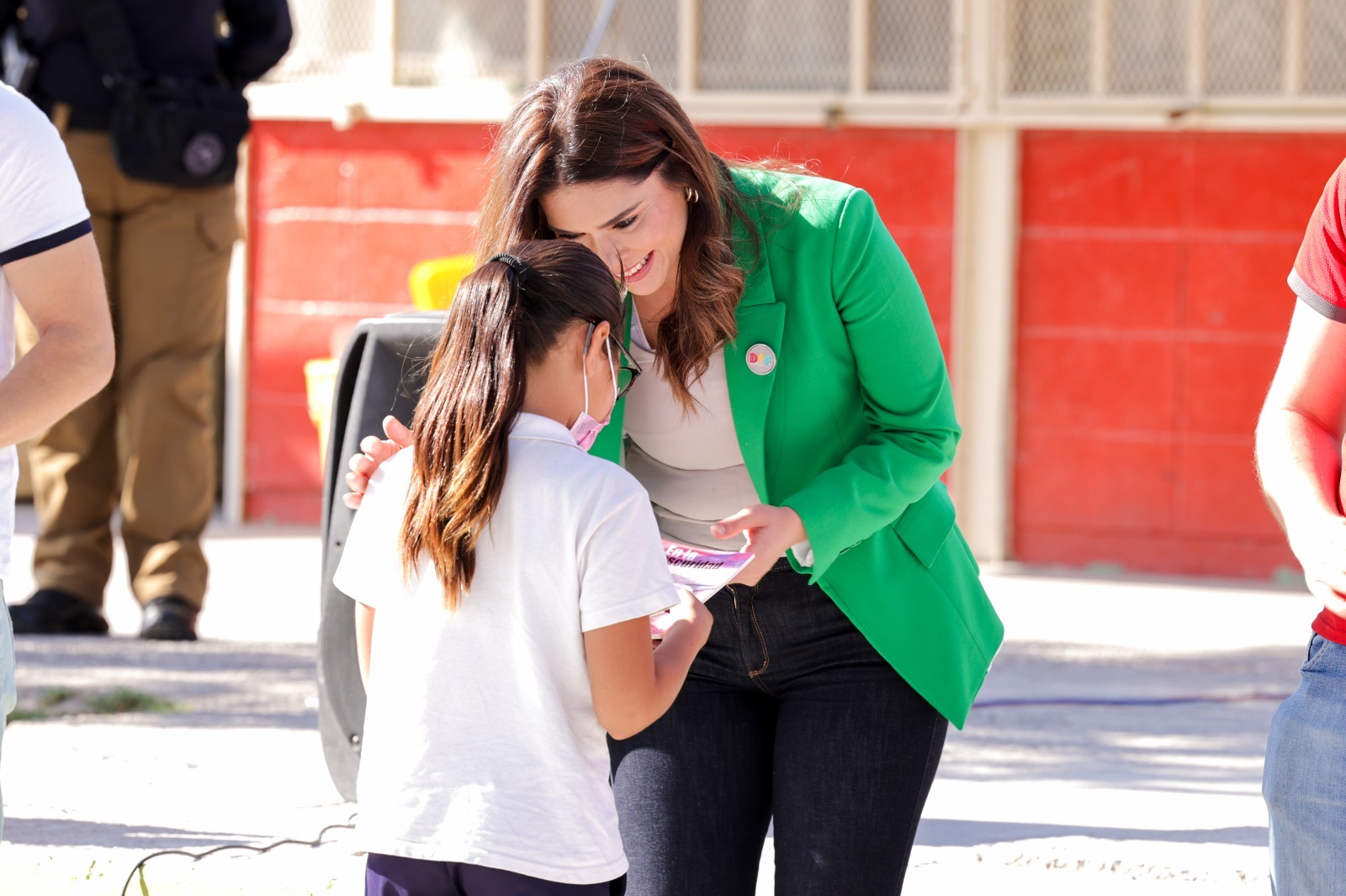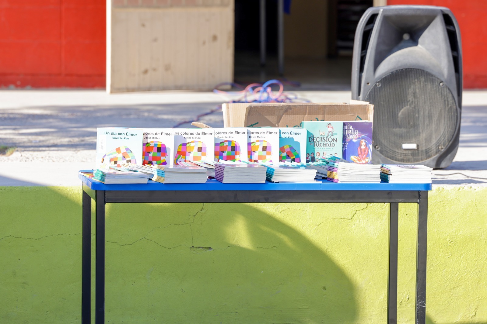 Durante la visita, la presidenta de DIF y sus acompañantes hicieron una donación de libros para cada uno de los 200 estudiantes del plantel.