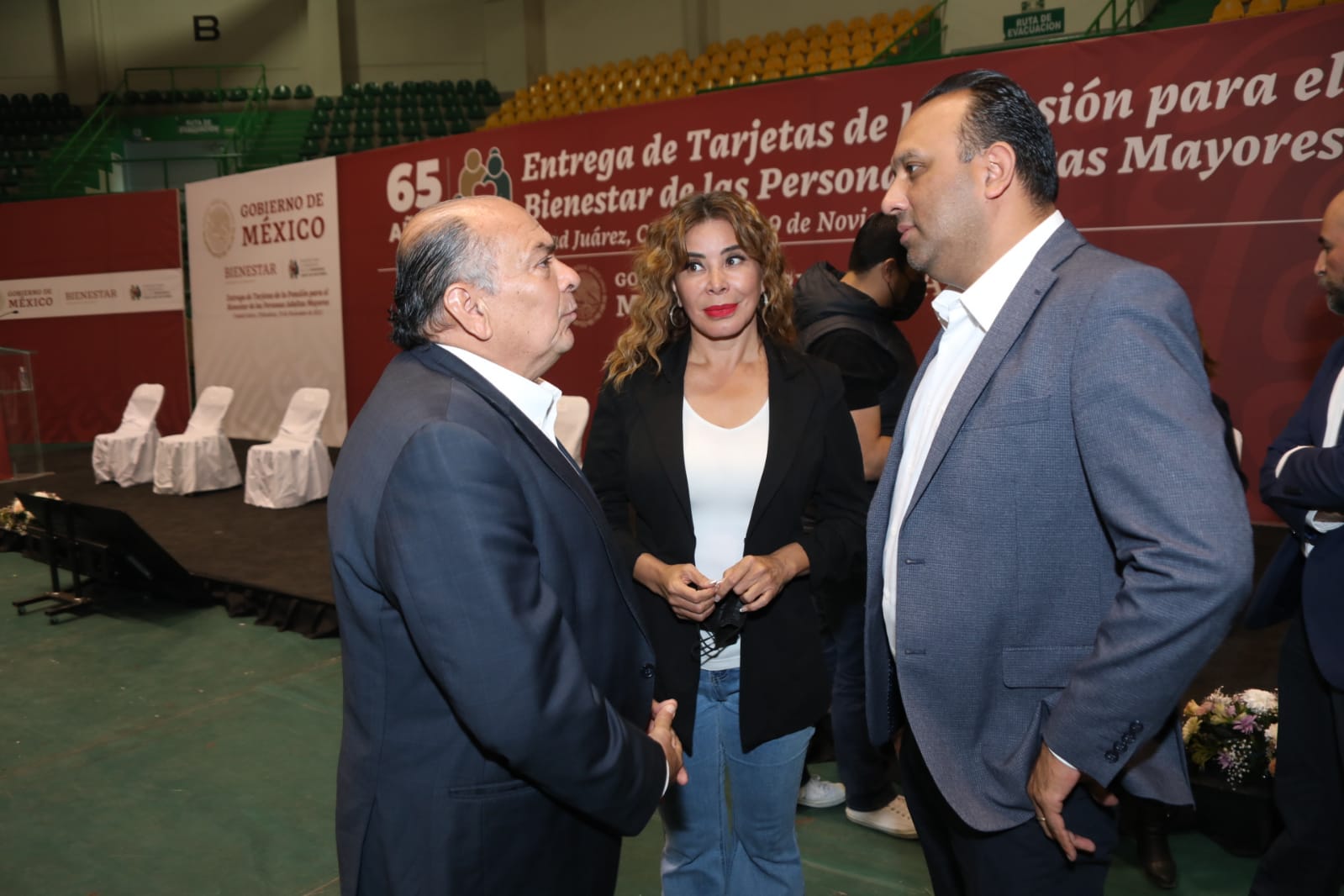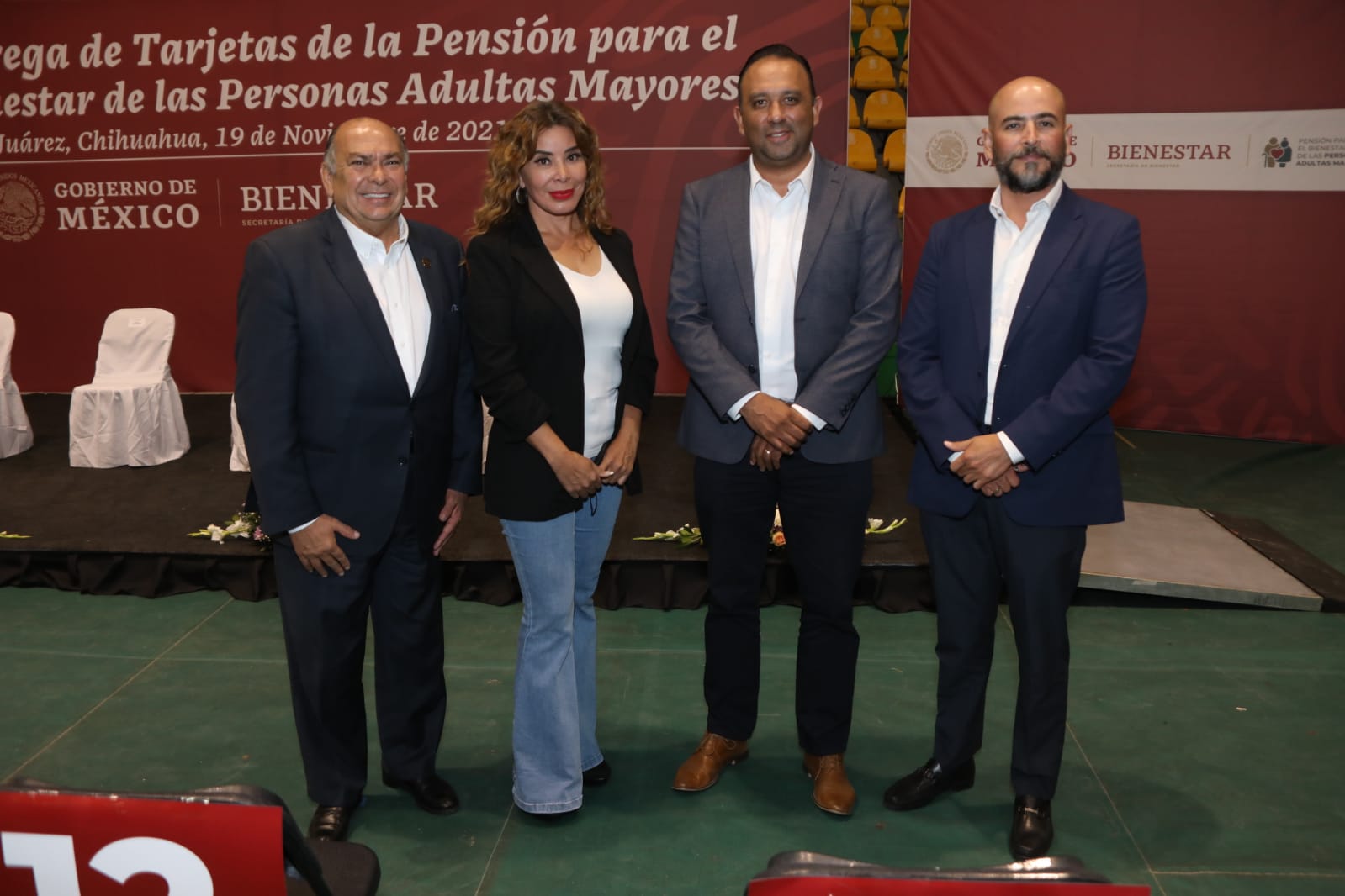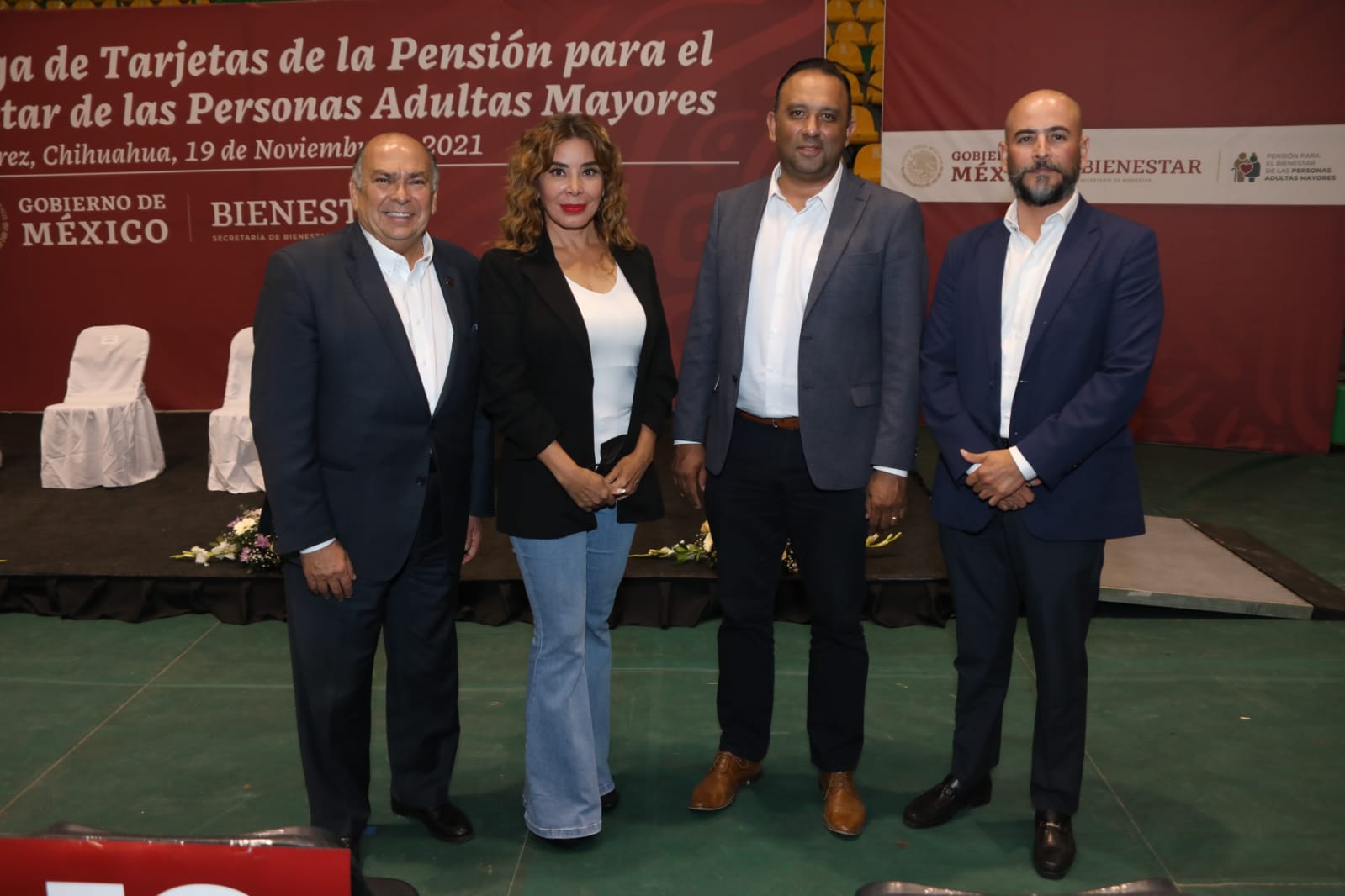 Asistieron a la entrega de tarjetas, la Subsecretaria de Bienestar a nivel nacional, Ariadna Montiel Reyes; el Delegado de Programas de Desarrollo en el Estado de Chihuahua, Juan Carlos Loera De la Rosa; la presidenta de la Comisión de Desarrollo Social en el Congreso del Estado, la diputada Magdalena Rentería Pérez y la Delegada Regional de Programas Integrales de Bienestar, Elizabeth Guzmán Argueta.