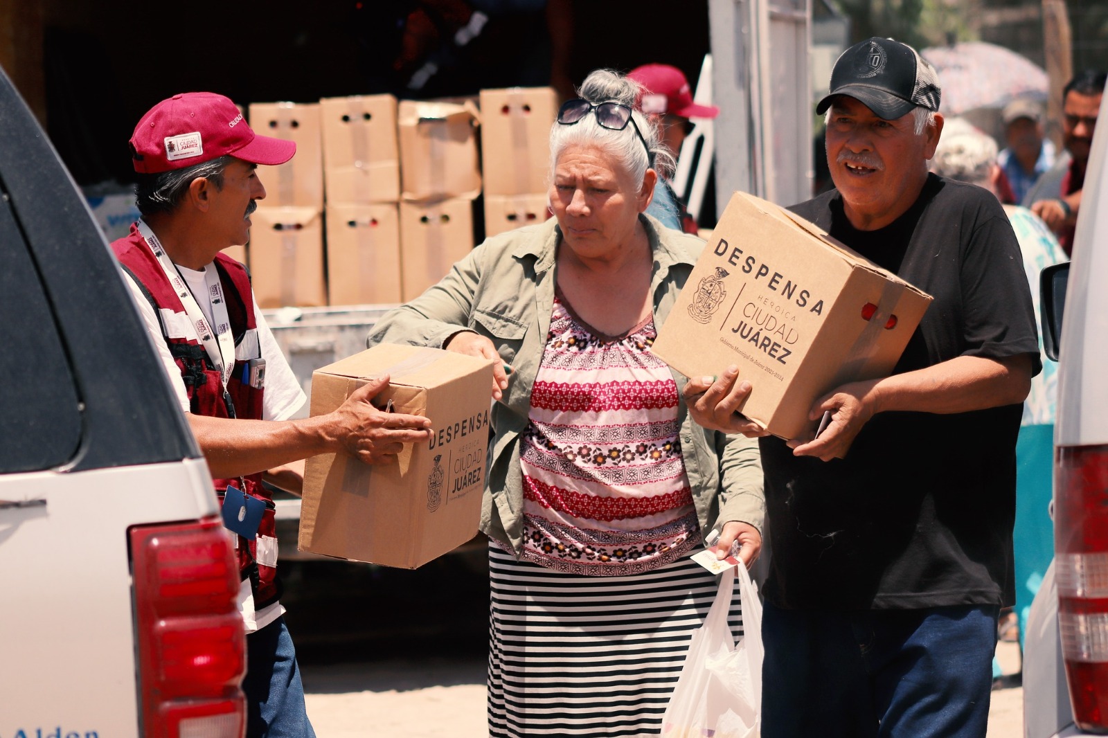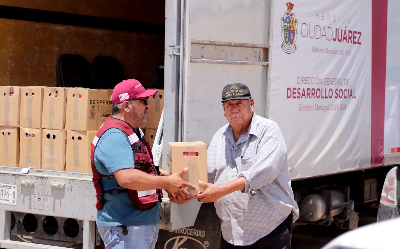 Con el fin de acercar el programa Cruzada por tu Familia a todas las áreas del municipio, este día trabajadores de la Dirección General de Desarrollo Social acudieron a los poblados del Valle de Juárez y Samalayuca para hacer entregas de apoyo alimentario.