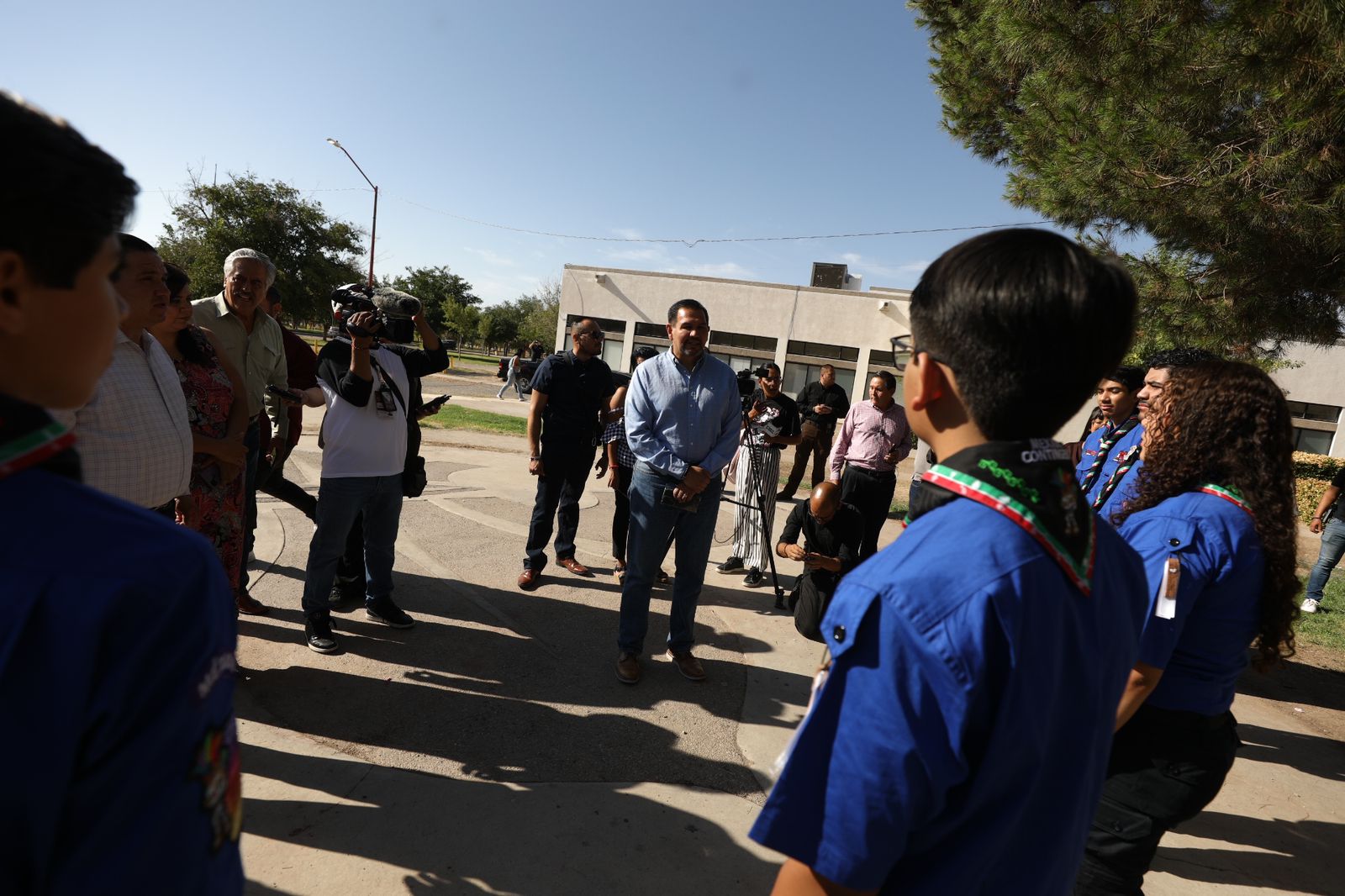 La delegación de Scouts de Ciudad Juárez que representarán a Chihuahua en el evento mundial de Scouts Jamboree 2023, platicaron hoy con el Presidente Municipal, Cruz Pérez Cuéllar para ponerse a su disposición y apoyar en todas aquellas tareas que estén enfocadas a mejorar esta frontera.