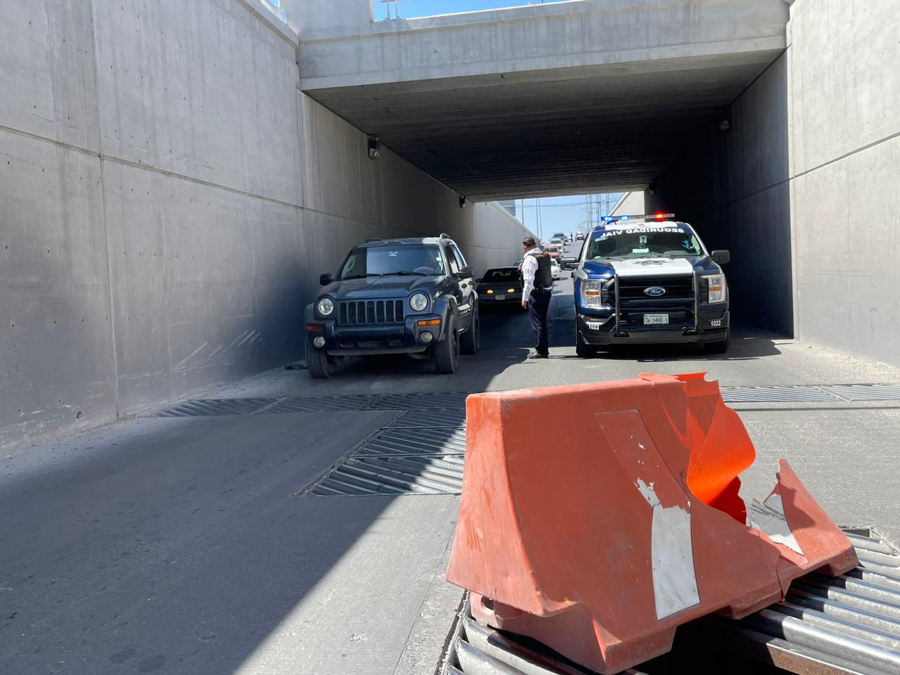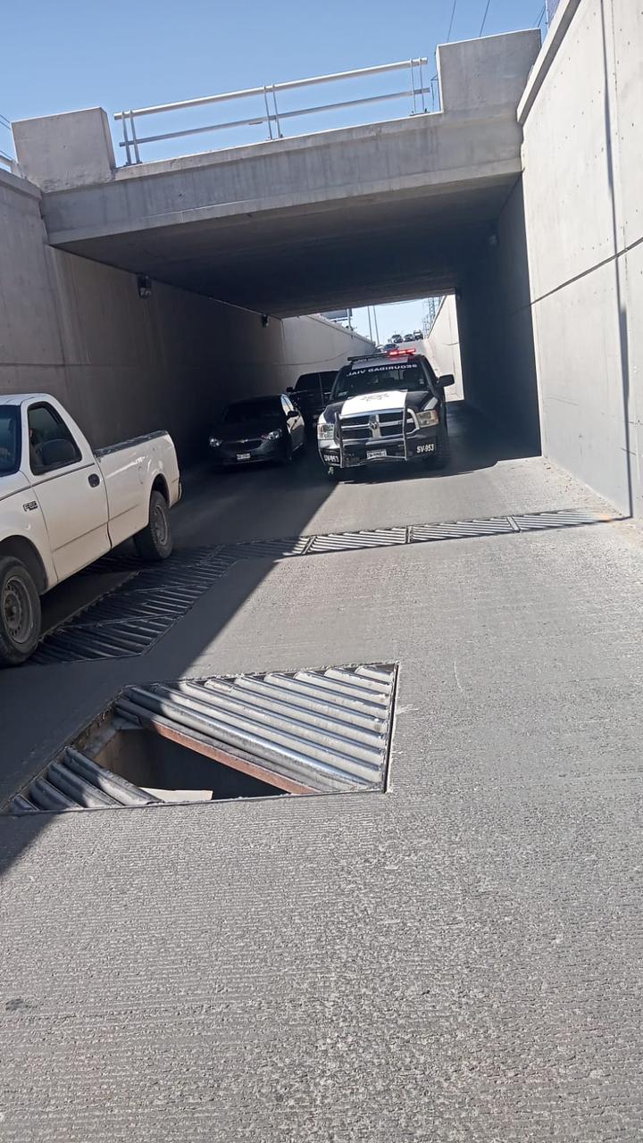 Lo anterior debido a un desperfecto en la rejilla metálica que cubre el desagüe del mencionado paso a desnivel, la cual estaba exponiendo a los conductores que transitan por el lugar a ser protagonistas de algún incidente vehicular, razón por la que se optó inhabilitar el carril de izquierdo tras colocar la debida señalización vial para desviar el tráfico por el carril de la derecha.