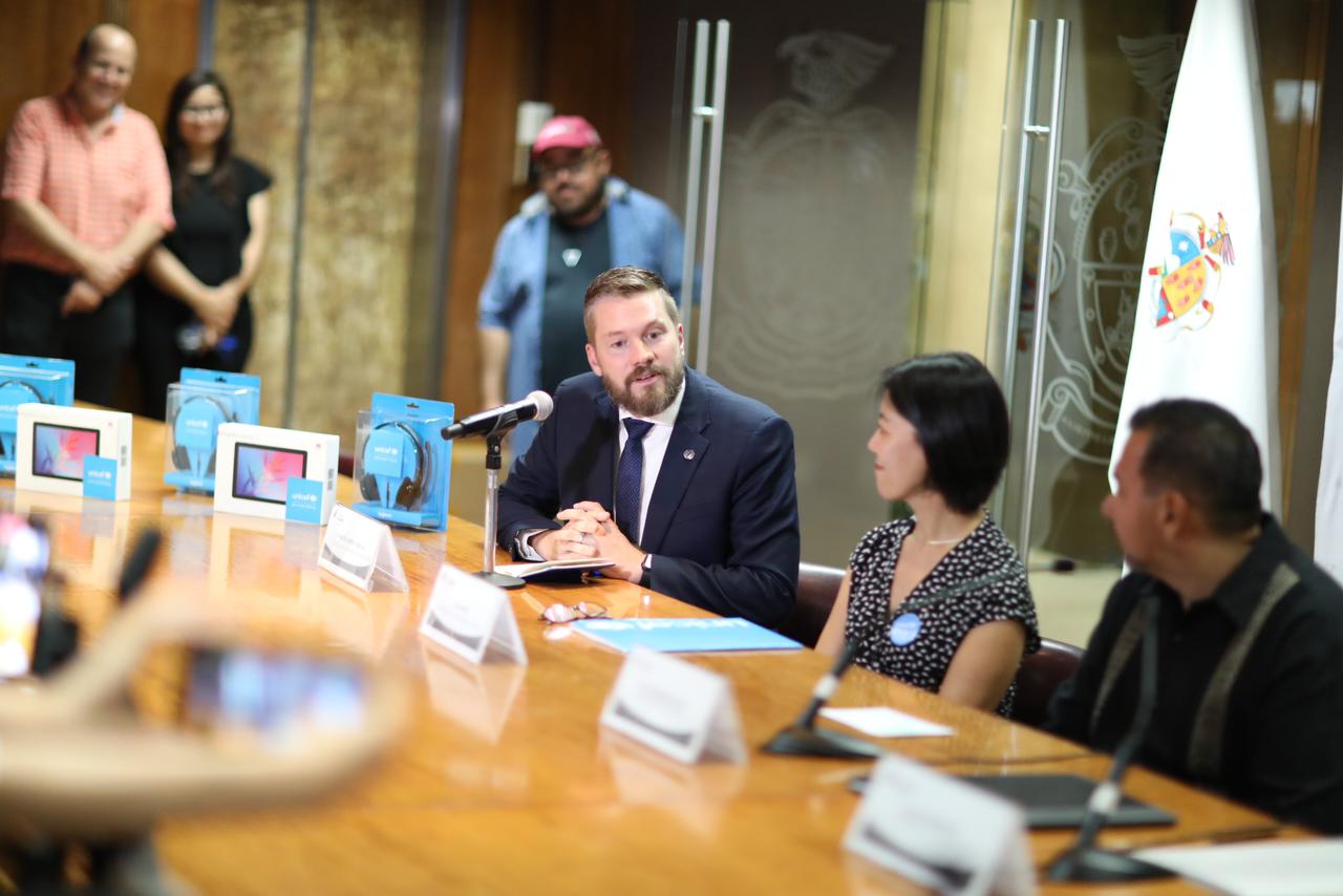 Tras la firma del convenio, se hizo una entrega simbólica de 70 tabletas electrónicas que Unicef otorgó al DIF para llevar a cabo el proyecto Akelius, a través del cual se impartirá el aprendizaje del inglés a estudiantes de los Casef.