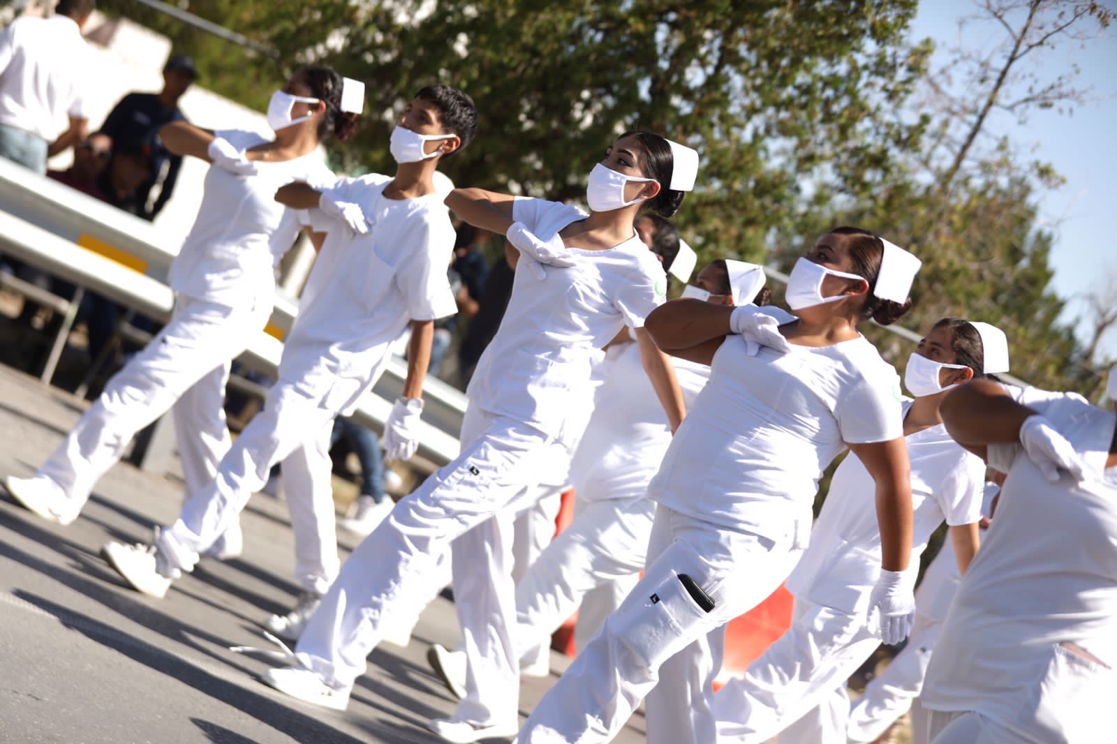 Los contingentes desfilarán con uniforme escolar en columnas acompañados de su banda de guerra y escolta de bandera con uniforme de gala en caso de contar con el mismo.