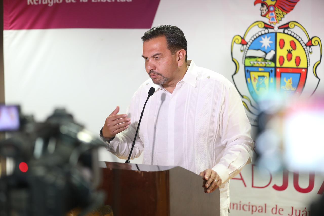 ??Lamento que nos veamos obligados a responder pero el que calla otorga, es lamentable, desconozco la razón por la que hace esos comentarios pero mi mensaje para los juarenses es que seguiremos trabajando, no nos vamos a distraer, vamos a seguir trabajando, para eso estamos aquí, dando resultados y diciendo con toda claridad cuáles son las obras que estamos haciendo?, expresó el alcalde al referirse a los comentarios que hizo el representante de Gobierno del Estado en Juárez, ?scar Fidencio Ibáñez Hernández.