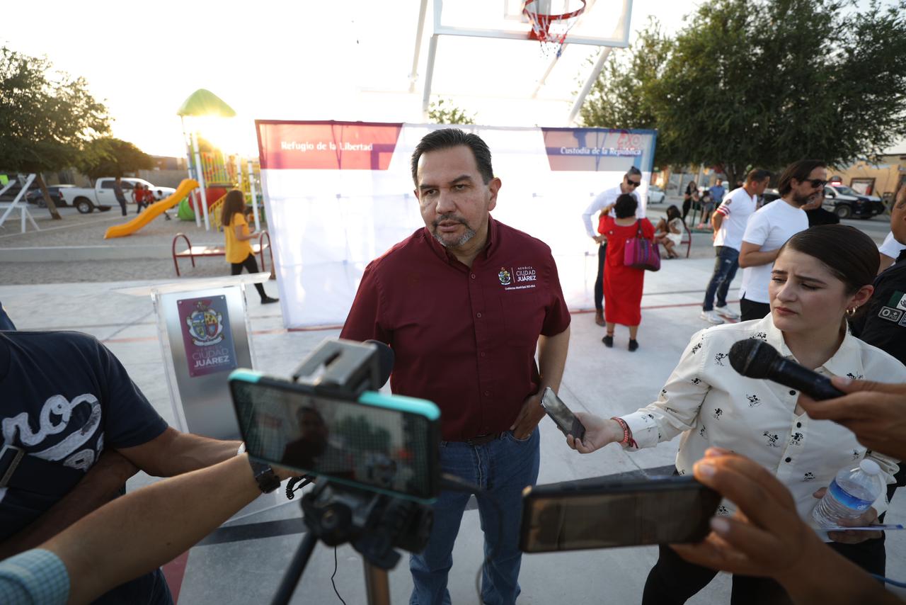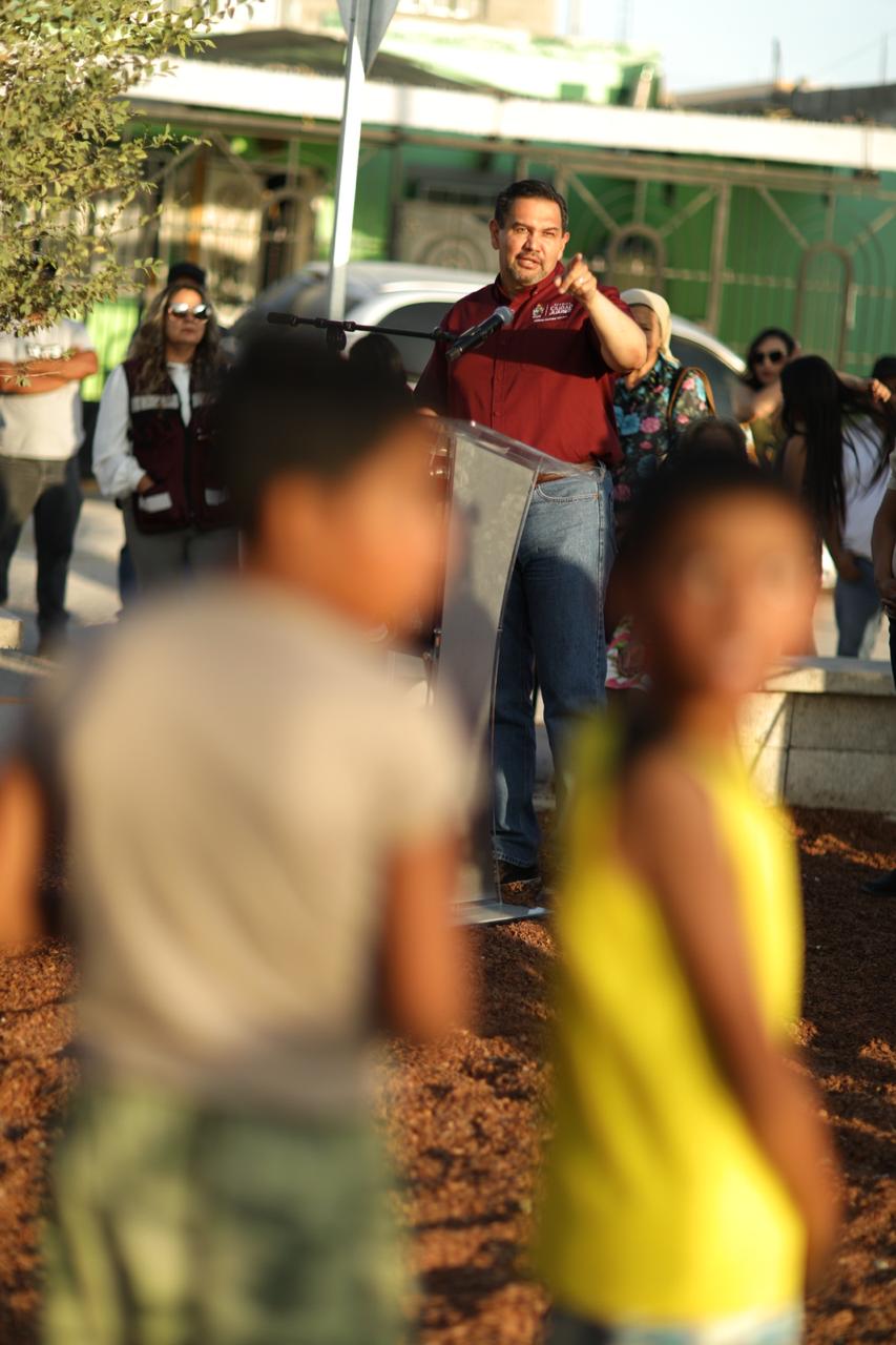 Yadira Cortés Castillo, representante de la Red Mesa de Mujeres, resaltó el trabajo y compromiso del alcalde en esta parte de la ciudad, donde mujeres se reunían en el terreno que no contaba con mobiliario y llevaban a cabo talleres y ahora podrán disfrutar de un espacio adecuado para las infancias y las familias en general que habitan en los alrededores.
