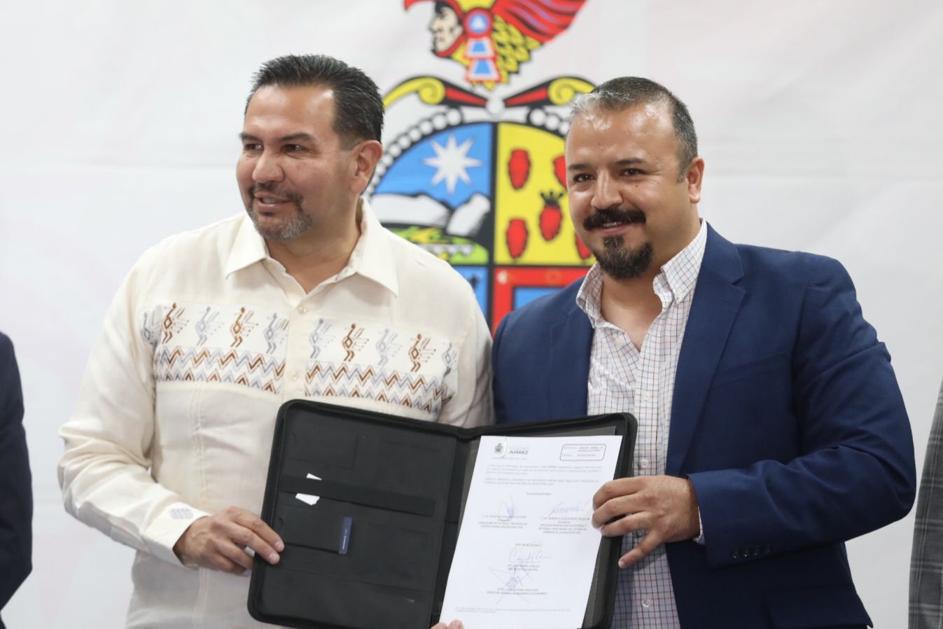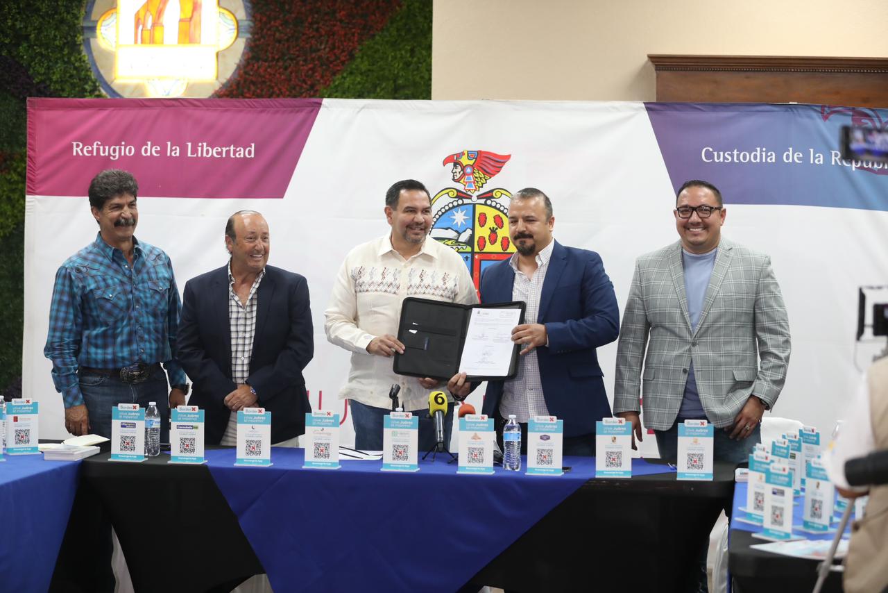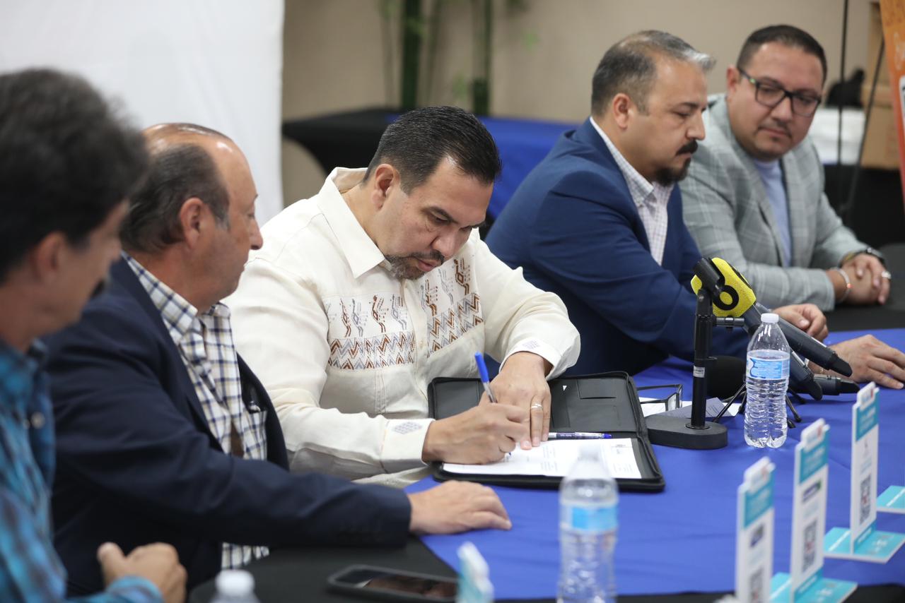 En la firma del acuerdo también estuvieron Iván Antonio Pérez Ruiz, director general de Desarrollo Económico y Rogelio Ramos, presidente de la Cámara Nacional de Comercio.