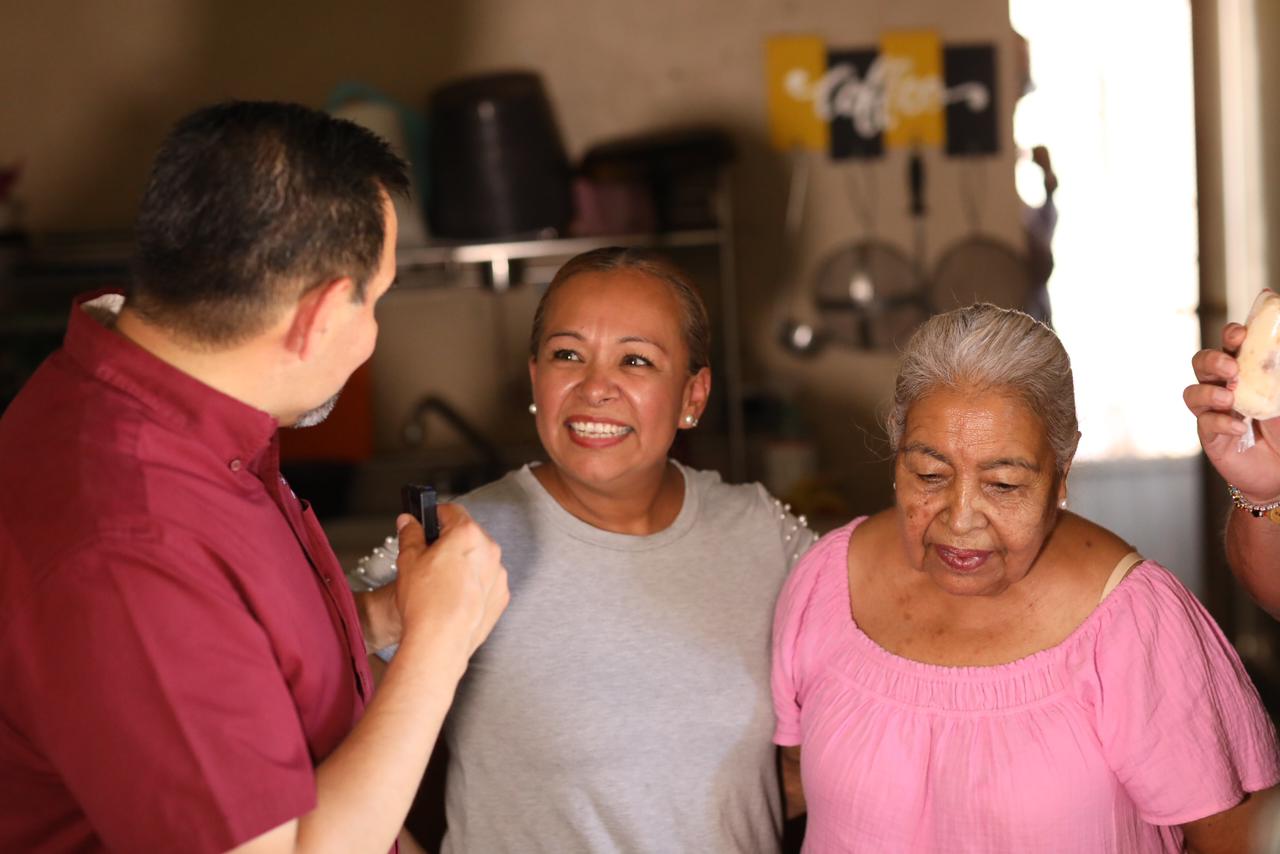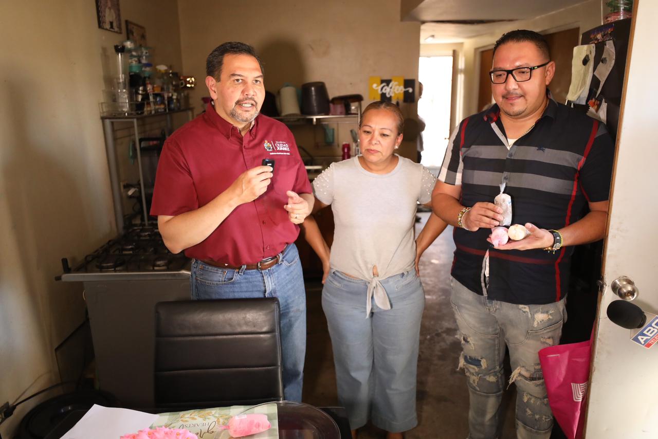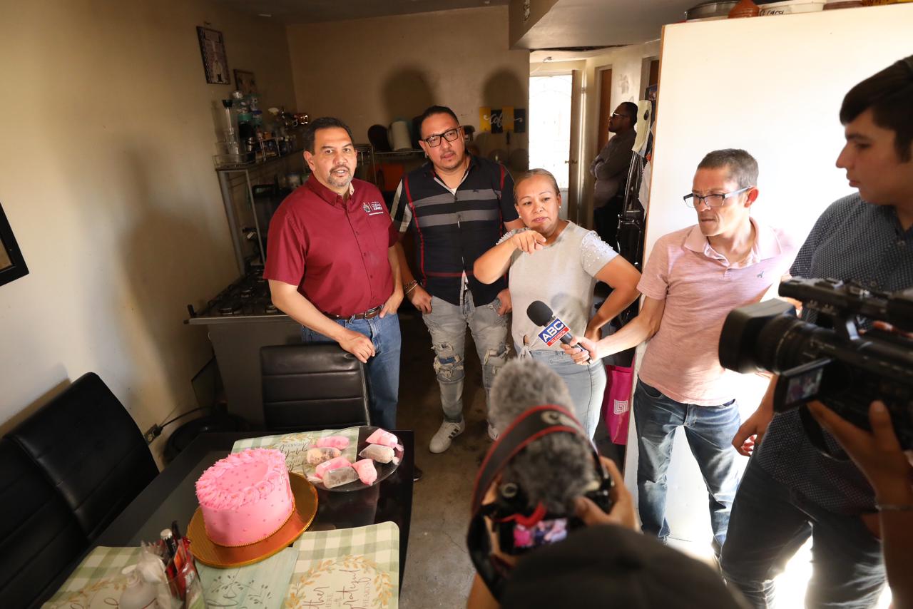 La mujer acudió hace una semana a la Cruzada por Juárez que se llevó a cabo a una cuadra de su casa, donde habló con el director de Desarrollo Económico del Municipio, Iván Pérez, quien conoció sus productos y hoy acompañó al alcalde a la vivienda de Nubia para apoyarla y promocionar su negocio.