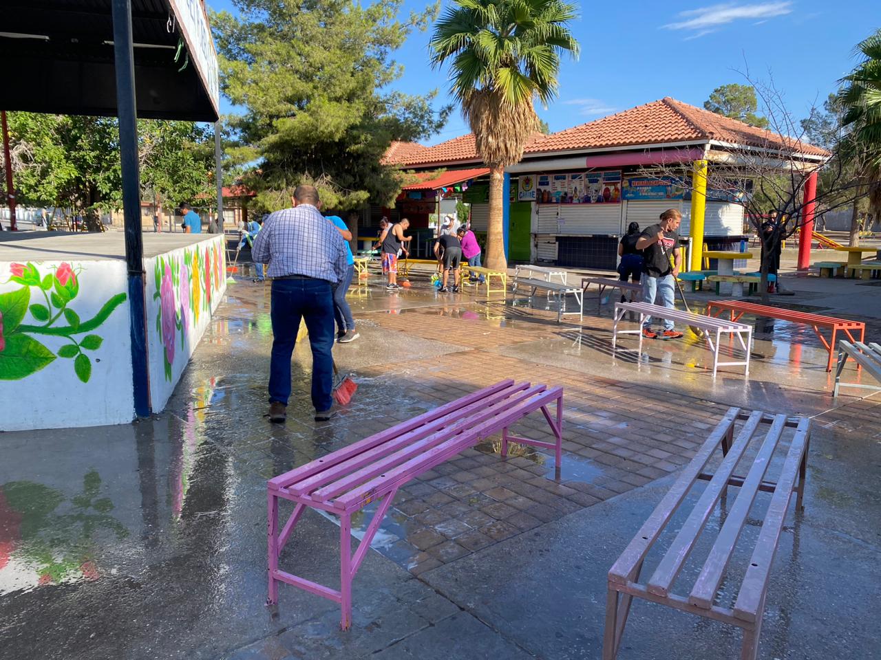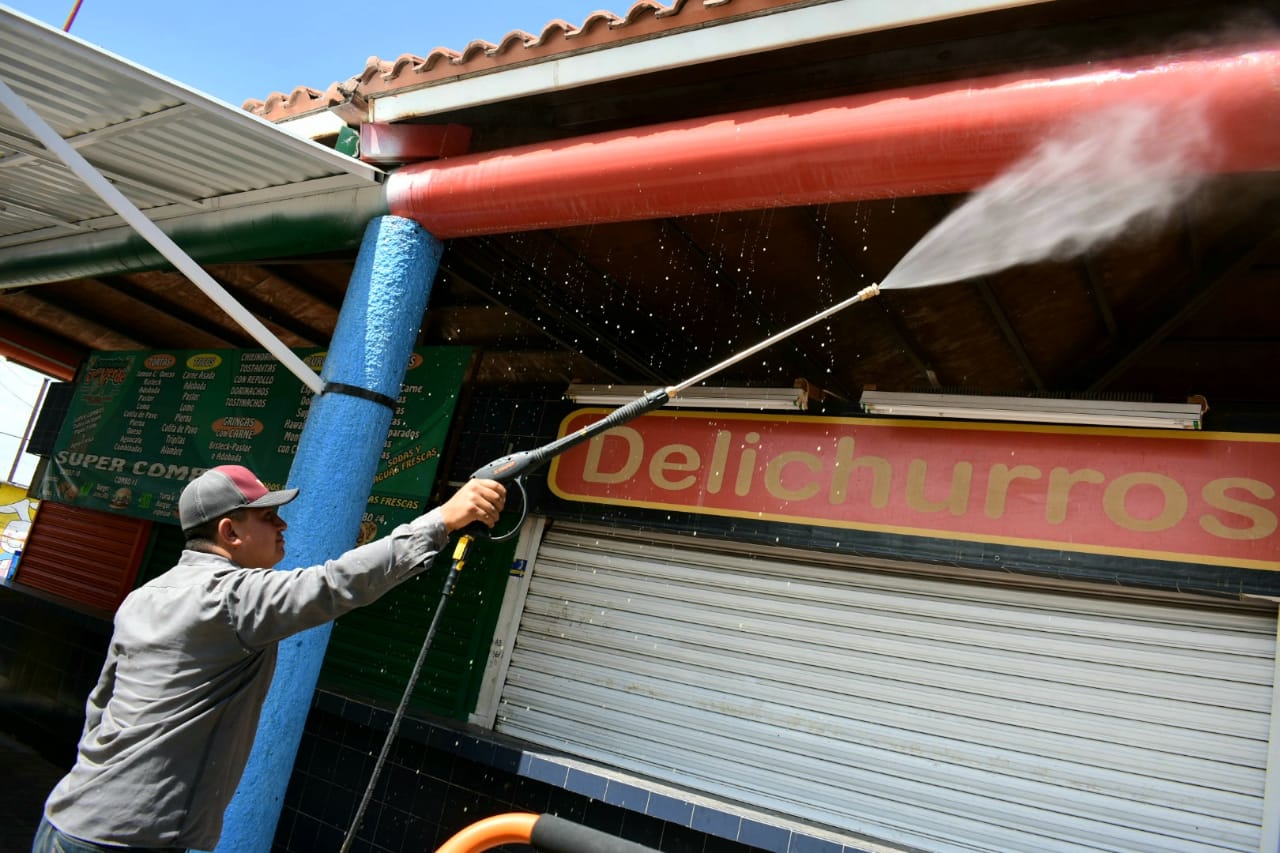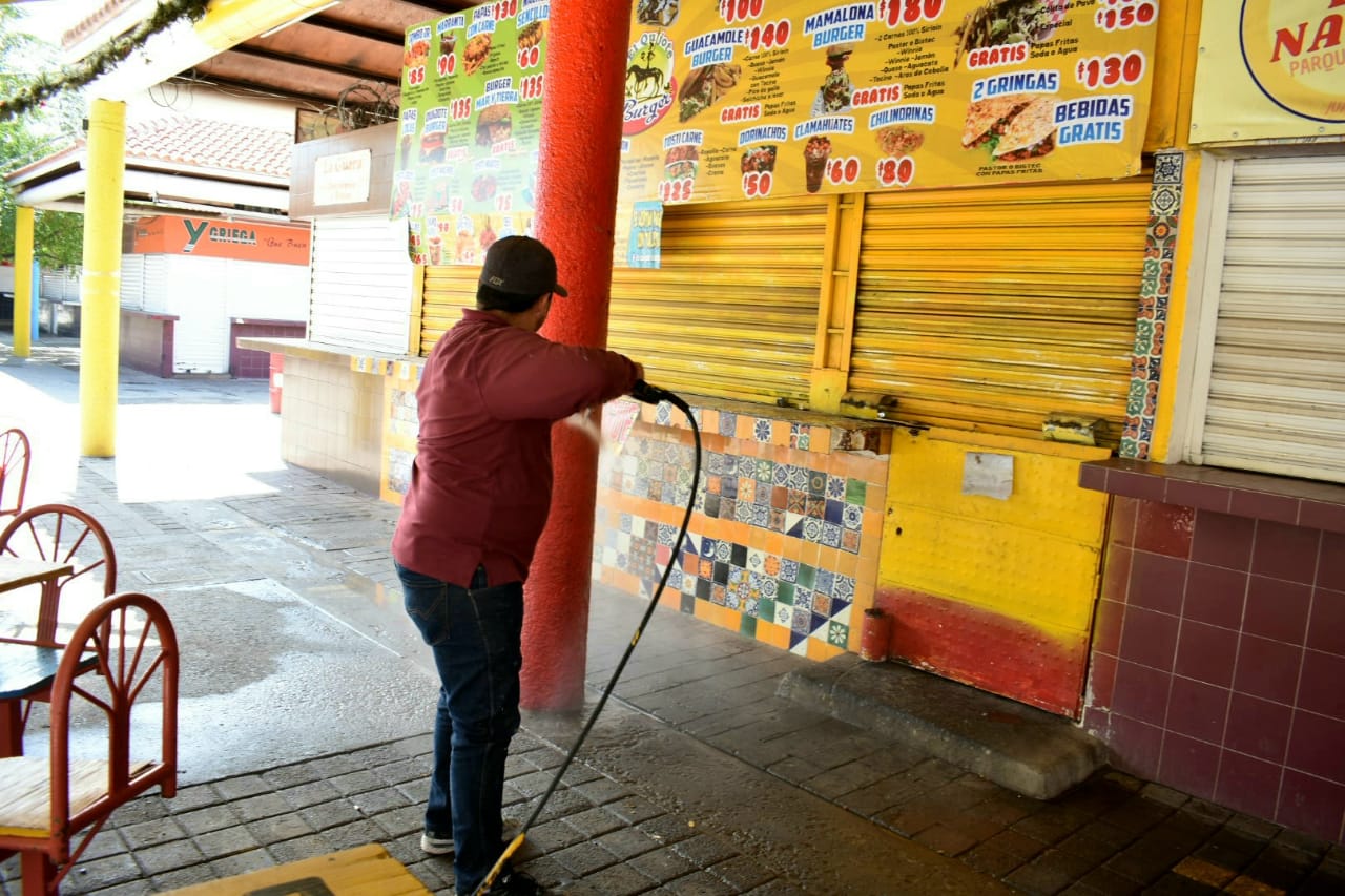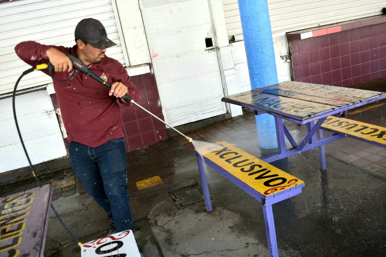 Indicó que las cuadrillas trabajaron con una lavadora de hidropresión y apoyándose con las pipas de agua tratada de Parques y Jardines, con lo cual lavaron los techos y los baños, mientras que la Dirección de Comercio consiguió desengrasantes para lograr una mejor limpieza en este lugar.