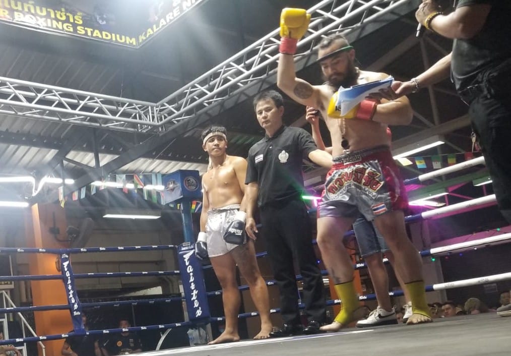 En la primera pelea derrotó al norteamericano Will y en la segunda al tailandés Phaya Noi, por nocaut técnico; la tercera pela fue un empate contra Rafael de Francia y hoy concluyó su cuarta al vencer a Kaew.