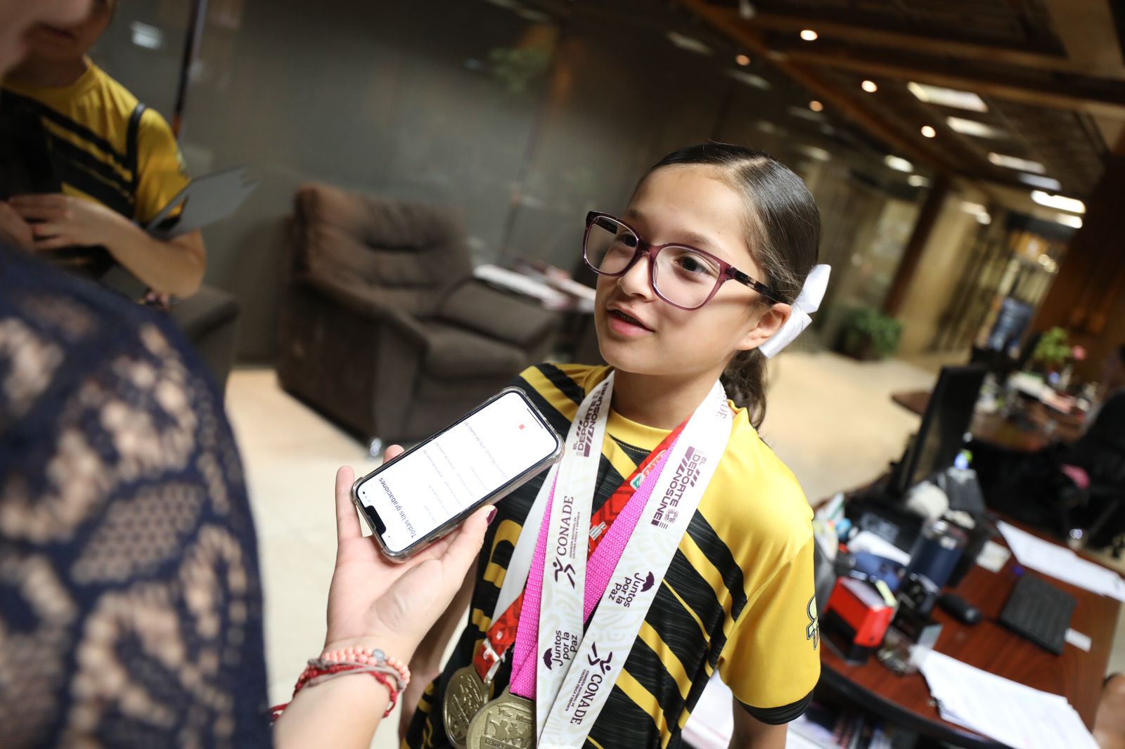La menor, quien acudió a la Unidad Administrativa ??Lic. Benito Juárez? acompañada de su madre, señora Cosma Chávez y su entrenador Rodrigo Nevárez, agradeció al alcalde por estar comprometido con las actividades deportivas en la ciudad.