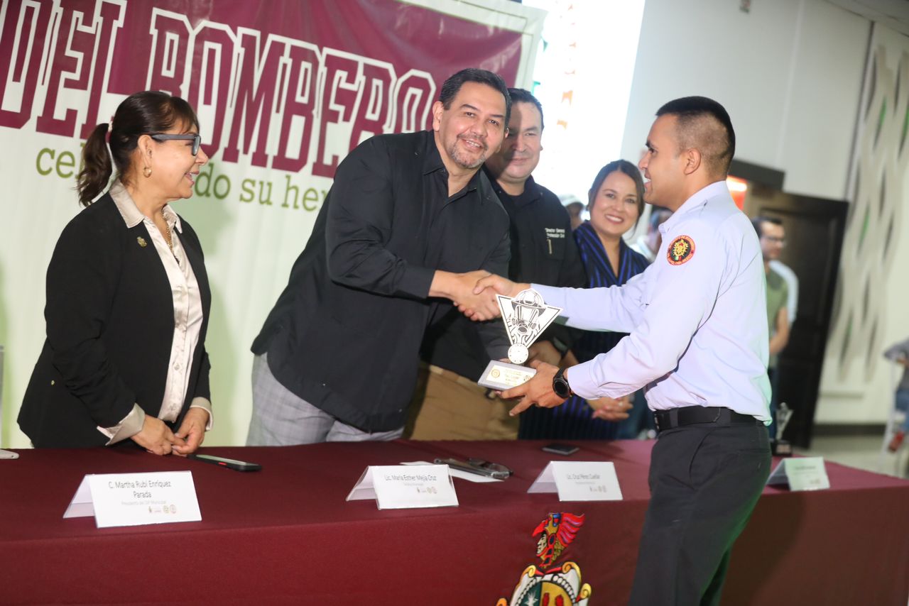 Como parte de la celebración fueron reconocidos los elementos Fernando Lara, Manuel Ambriz, Martín Torres y Christian Galván, por tener más de 25 años en el Heroico Cuerpo de Bomberos.