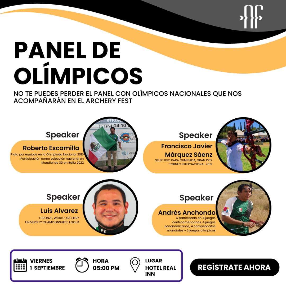 En el marco del evento Archery Fest, los campeones nacionales de tiro con arco, Roberto Escamilla, Francisco Javier Márquez Sáenz, Luis Álvarez y Andrés Anchondo, impartirán conferencias gratuitas durante tres días, a partir del 1 de septiembre.