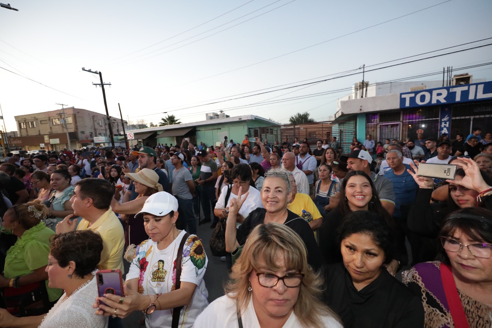 Cientos de juarenses encabezados por el Presidente Municipal, Cruz Pérez Cuéllar, recorrieron parte del Centro Histórico, desde la calle Ignacio Mejía con dirección a la casa de Juan Gabriel ubicada sobre la avenida 16 de Septiembre.