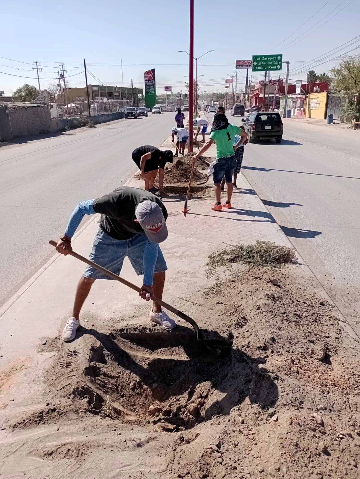 La Dirección de Derechos Humanos del municipio, dio a conocer que personas en situación de movilidad que se encuentran el albergue Enrique ??Kiki? Romero, realizaron trabajos de limpieza y prepararon hoyos para sembrar árboles en el camellón de la avenida De los Aztecas, en un acto que destaca la solidaridad y la colaboración de las personas migrantes.