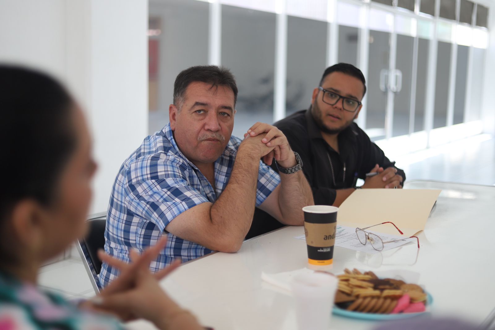 La coordinadora de la Comisión, regidora Vanessa Mora de la O, junto con el edil, Enrique Torres Valadez, se reunieron con el director de Centros Comunitarios, Jesús Manuel García Reyes.