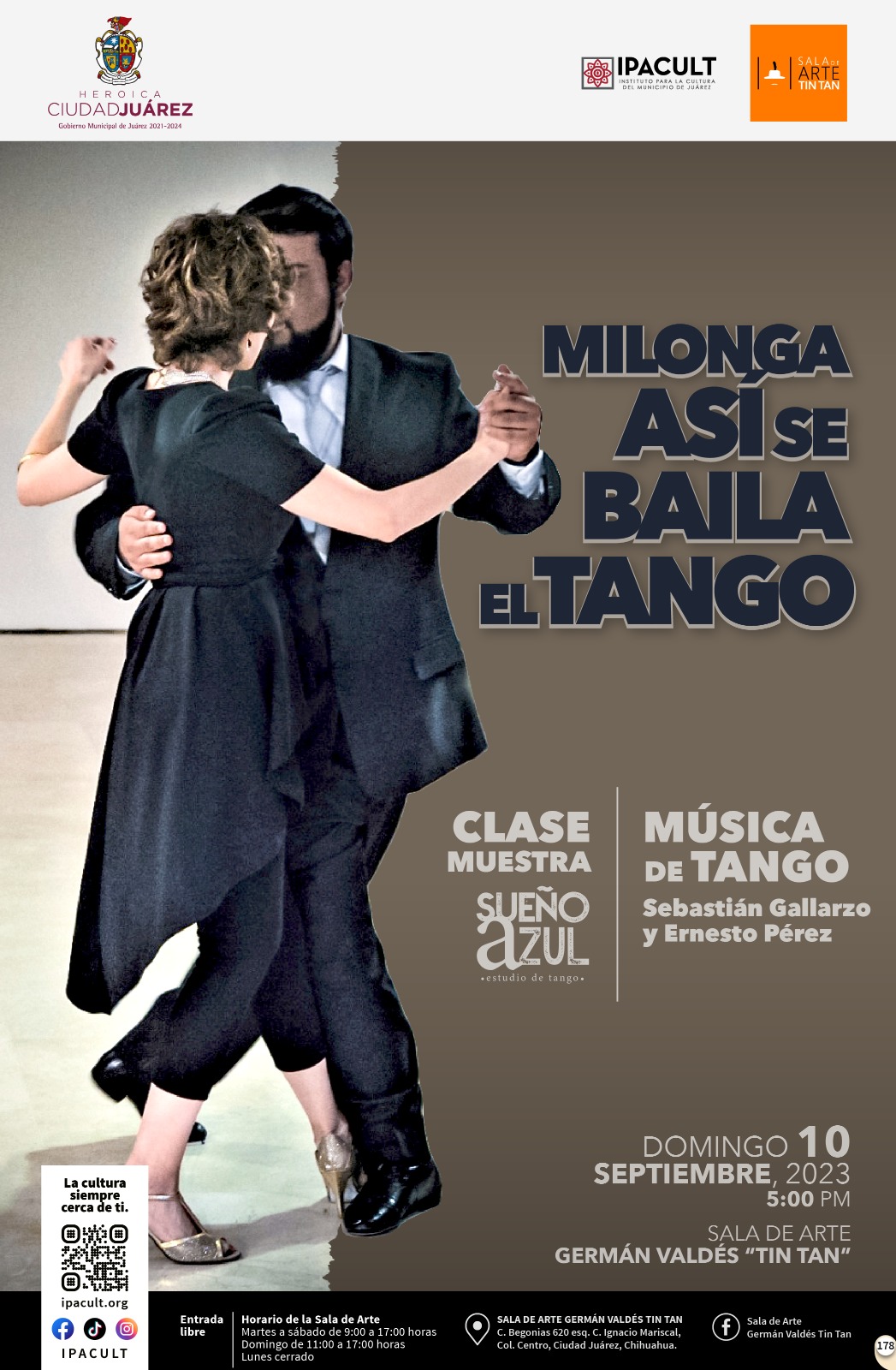 El próximo domingo 10 de septiembre se presentará ??Milonga, así se baila el tango?, espectáculo de baile y música que dará inicio a las 5:00 de la tarde y finalizando a las 8:00 de la noche, informó Miguel Ángel Mendoza Rangel, director del Instituto para la Cultura del Municipio de Juárez (IPACULT).