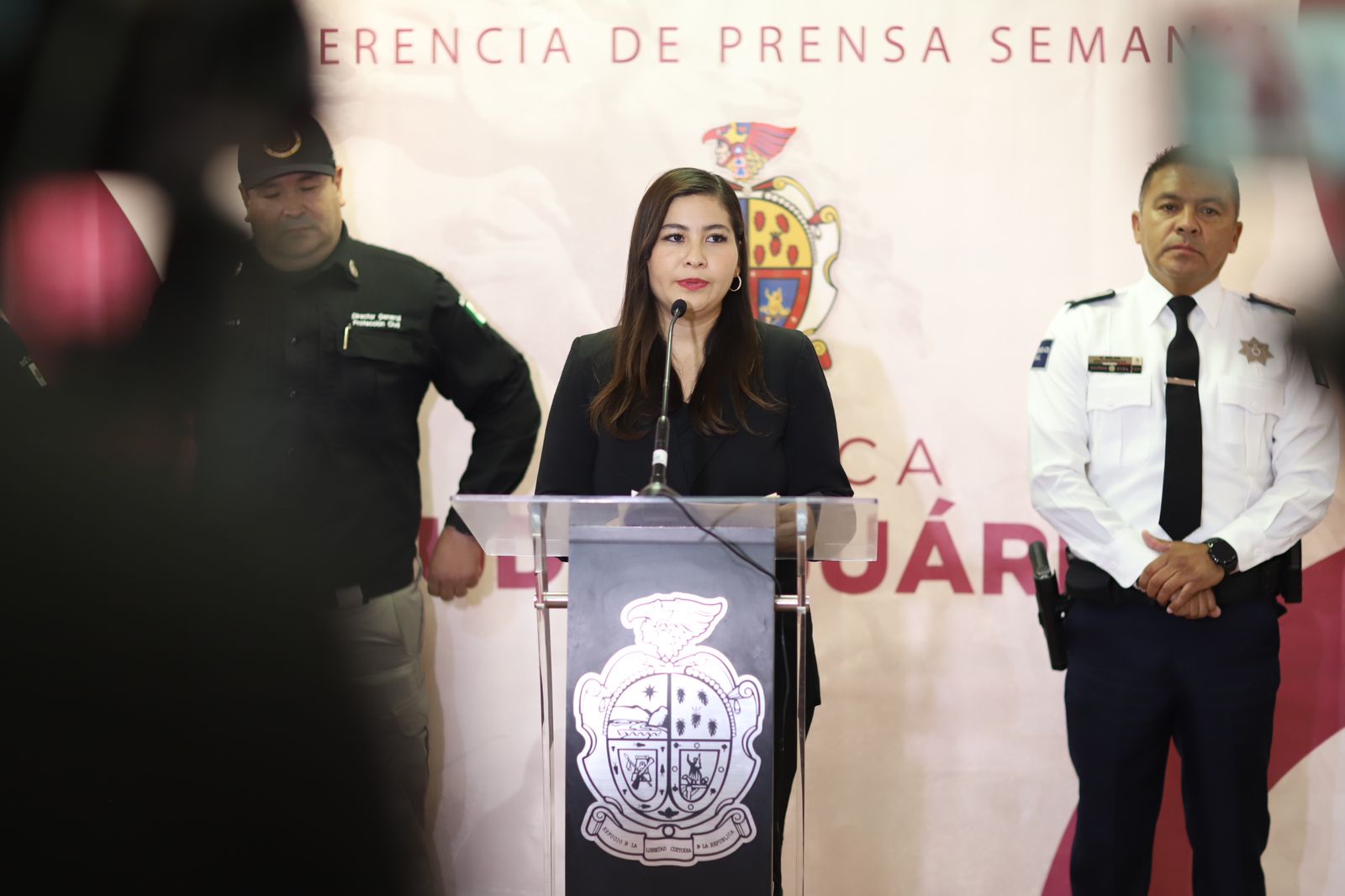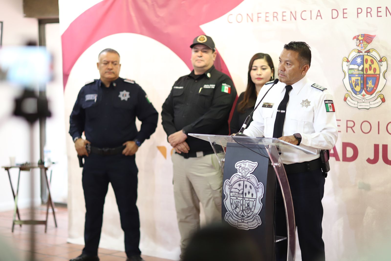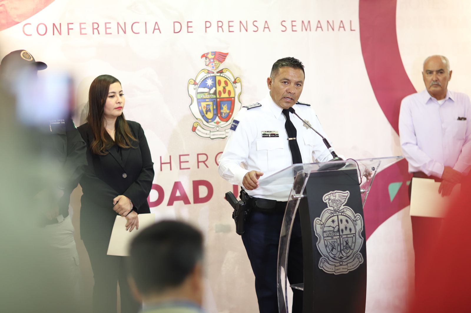 La información le dieron a conocer César Omar Muñoz Morales, secretario de Seguridad Pública Municipal (SSPM); Roberto Briones mota, director general de Protección Civil; Mayra Delgado, coordinadora de Relaciones Públicas y Víctor Daniel Mejía, director Operativo de la Coordinación General de Seguridad Vial (CGSV).