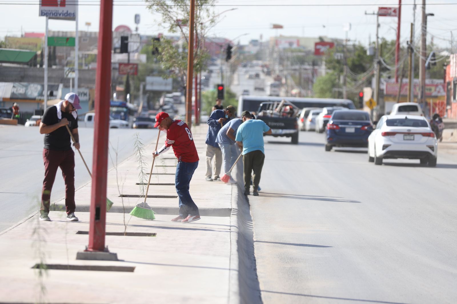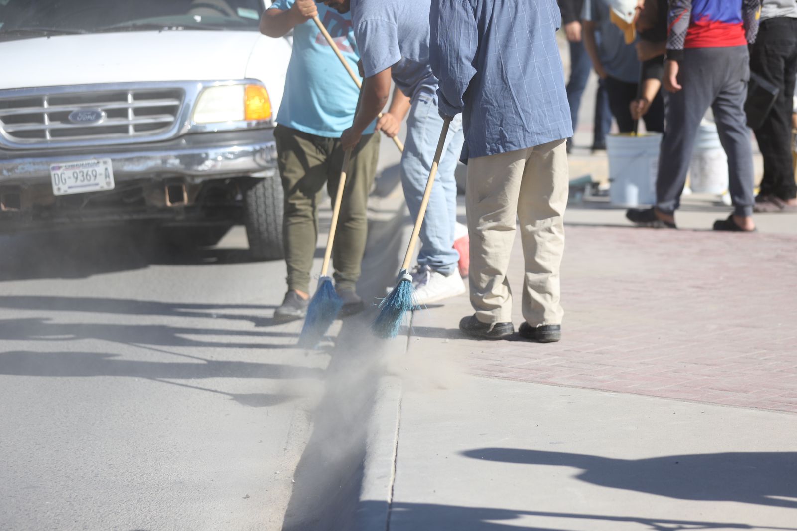 En un gesto de agradecimiento hacia la comunidad que les ha brindado apoyo en el albergue Enrique â??Kiki" Romero, un grupo de personas en situación de movilidad se unió de manera voluntaria en las tareas para rehabilitar y embellecer un camellón en la avenida De los Aztecas, informó Santiago González Reyes, director de Derechos Humanos del municipio.