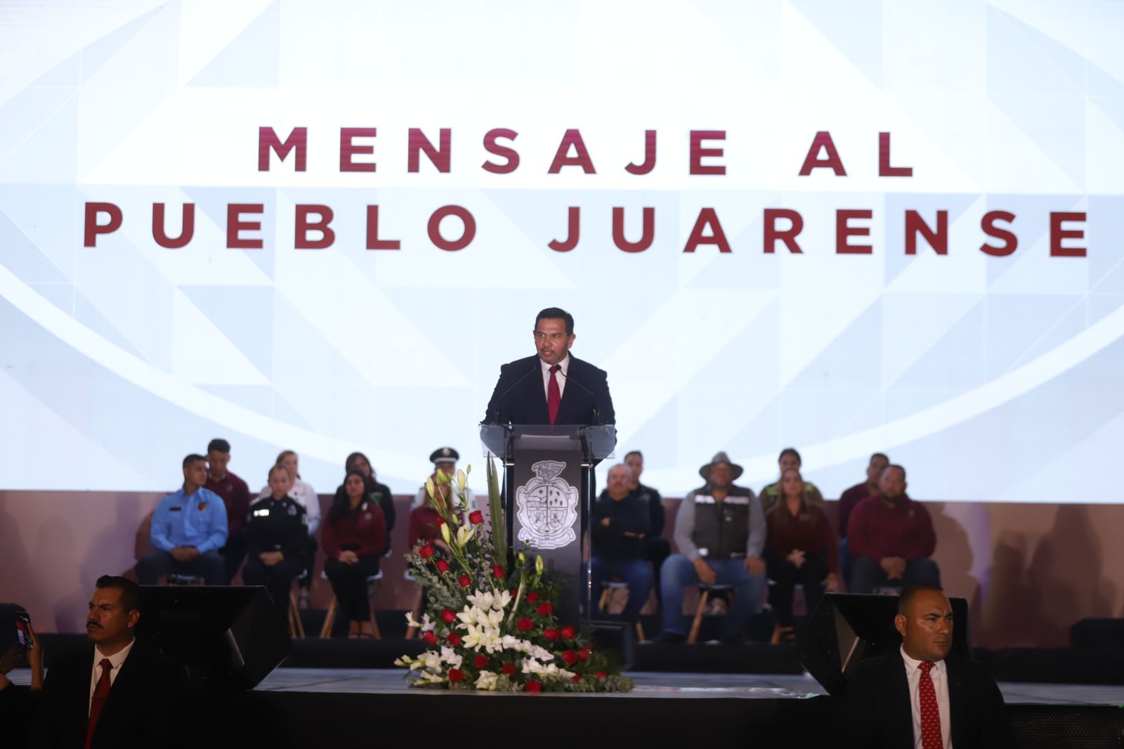Durante el informe agradeció a su equipo de trabajo y los animó a seguir trabajando por los juarenses, a fin de seguir transformando la ciudad, pues el cambio ya se nota.