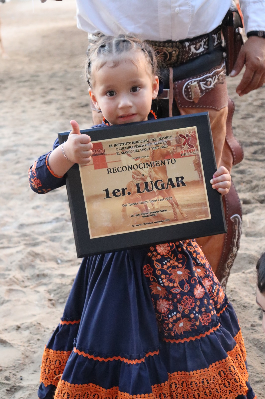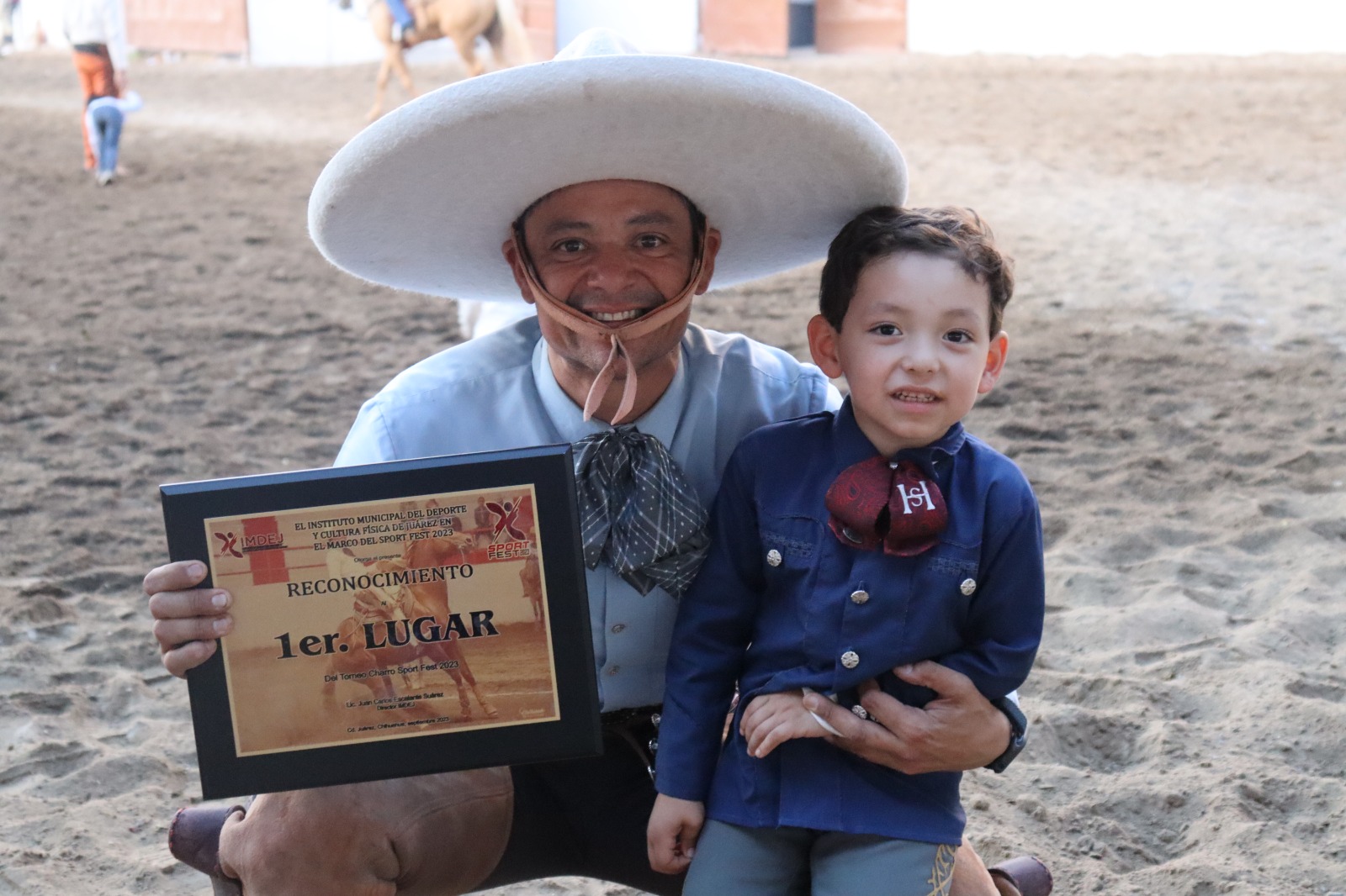 Durante la ceremonia de premiación, el director del IMDEJ, Juan Escalante y miembros de la Liga Municipal de Charrería, entregaron un reconocimiento por su trayectoria deportiva de más de 40 años en las suertes charras a Osvaldo ??Chacho? Villar, hijo de Don Leonardo Villar Apodaca y la señora Raquel Calvillo Villar.