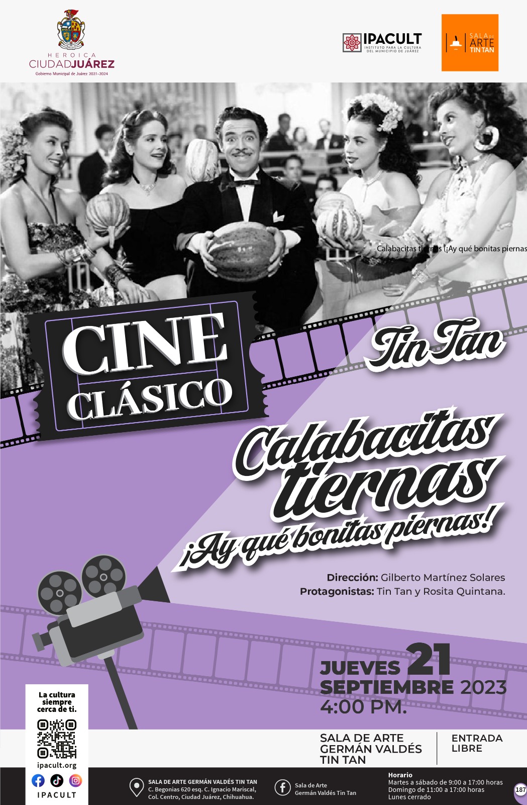 El IPACULT, a través de la Sala de Arte Germán Valdés ??Tin Tan?, invita la comunidad para que asista a disfrutar de esta película en compañía de la familia, los amigos o en solitario y pasar así, una tarde con las ocurrencias del cómico juarense por adopción.