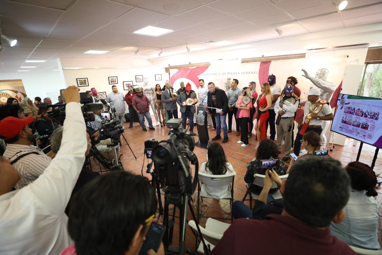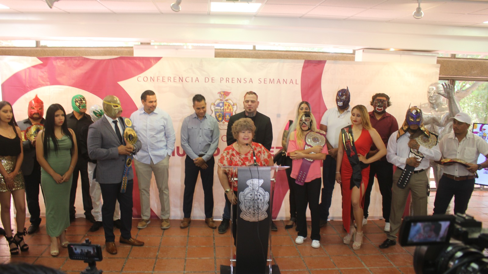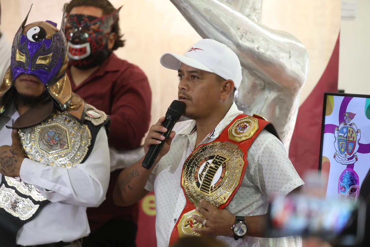 A la conferencia de prensa asistieron también alrededor de 15 luchadores y luchadoras profesionales, en representación de las arenas de esta localidad.