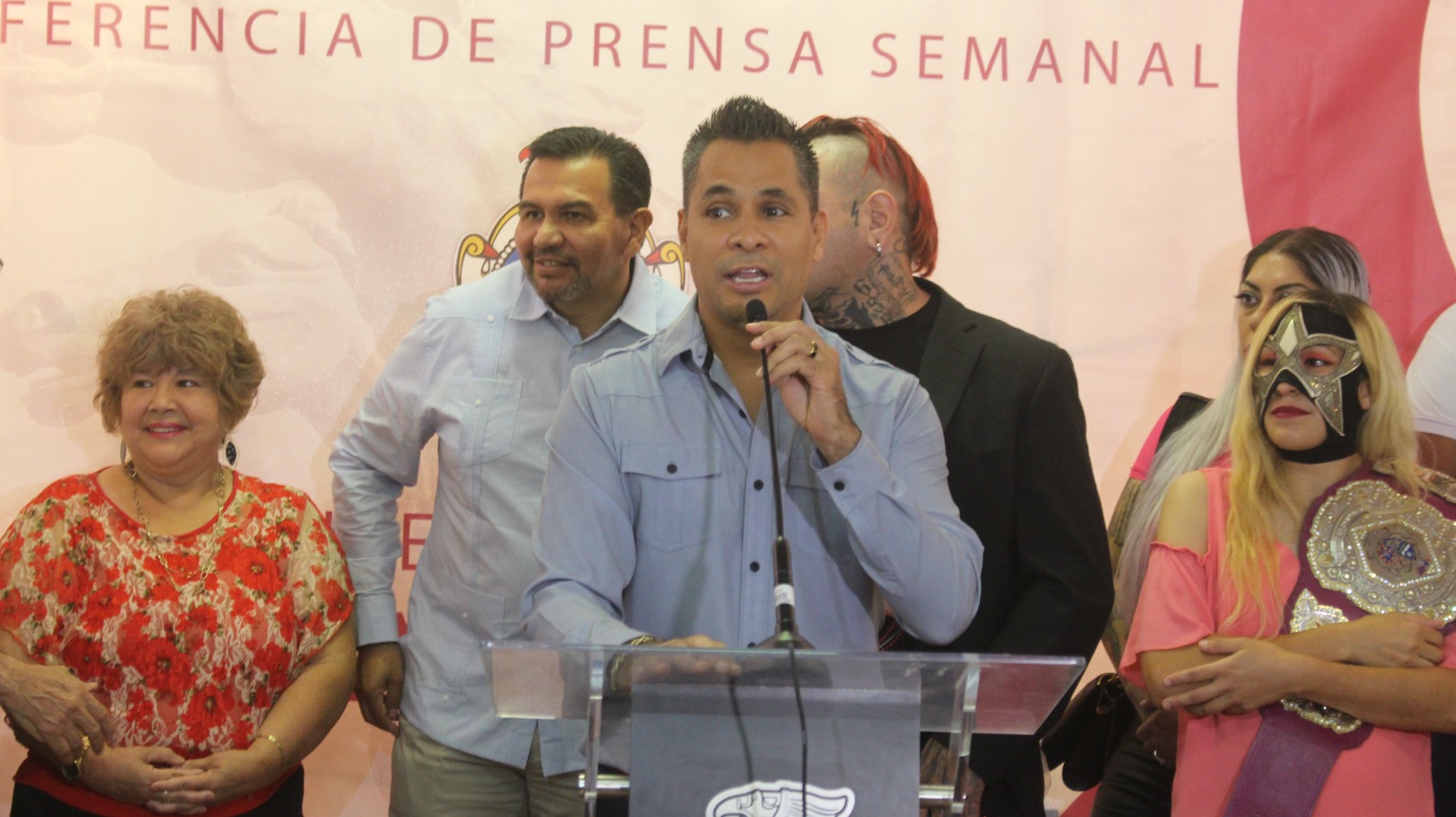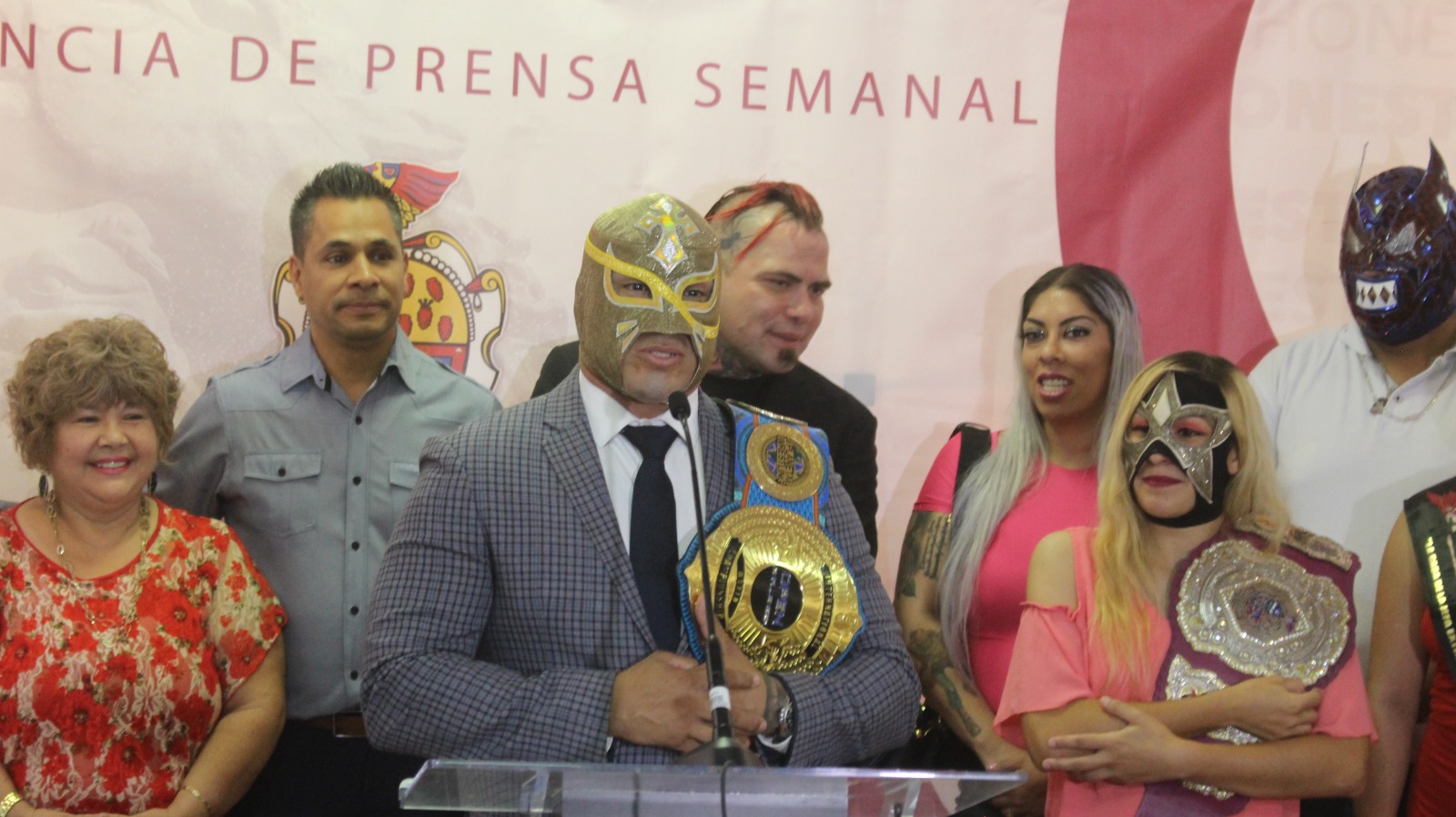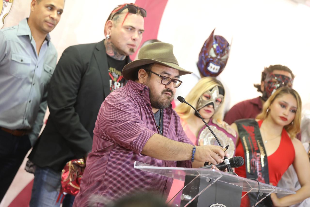 A la conferencia de prensa asistieron también alrededor de 15 luchadores y luchadoras profesionales, en representación de las arenas de esta localidad.