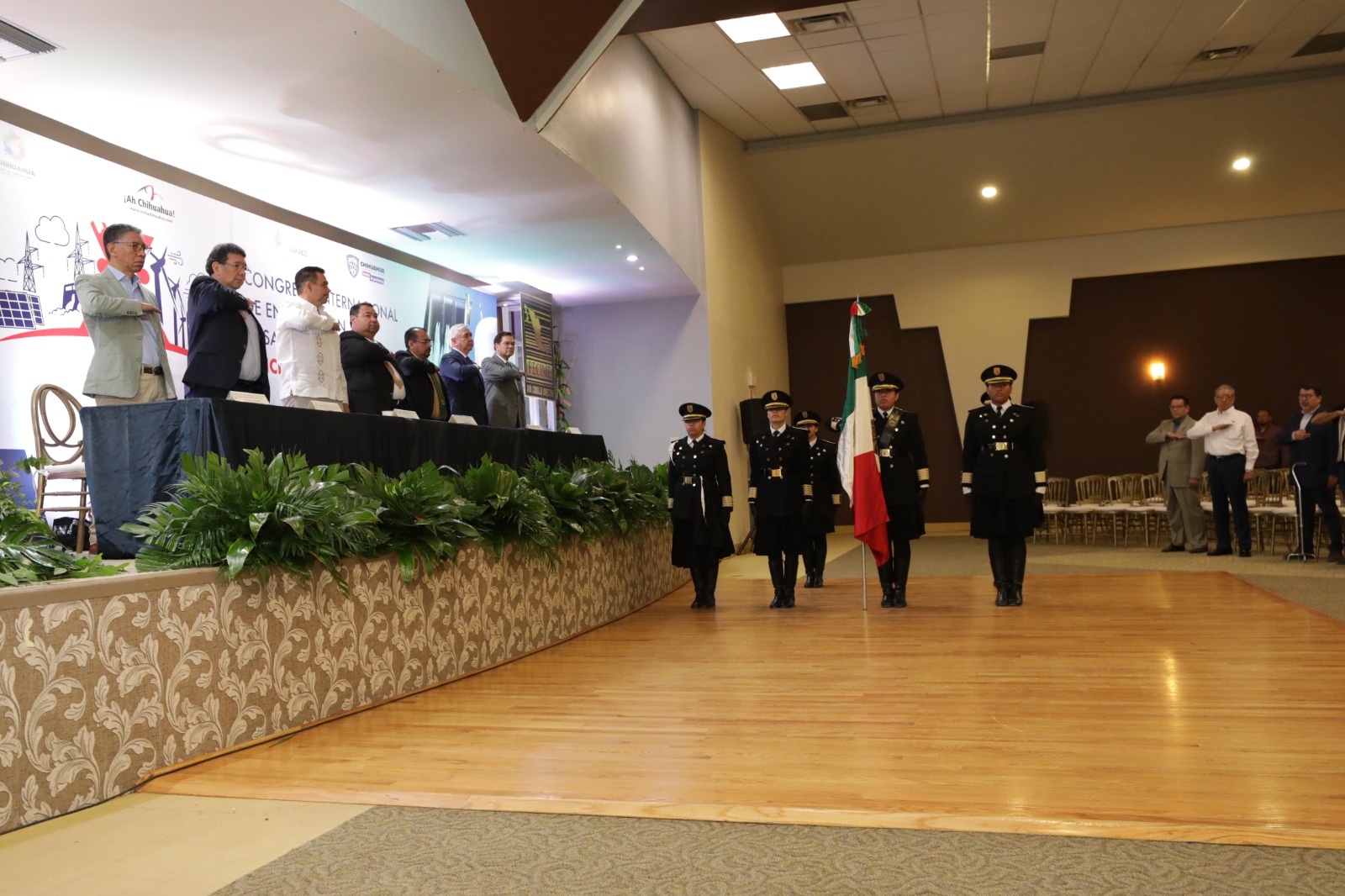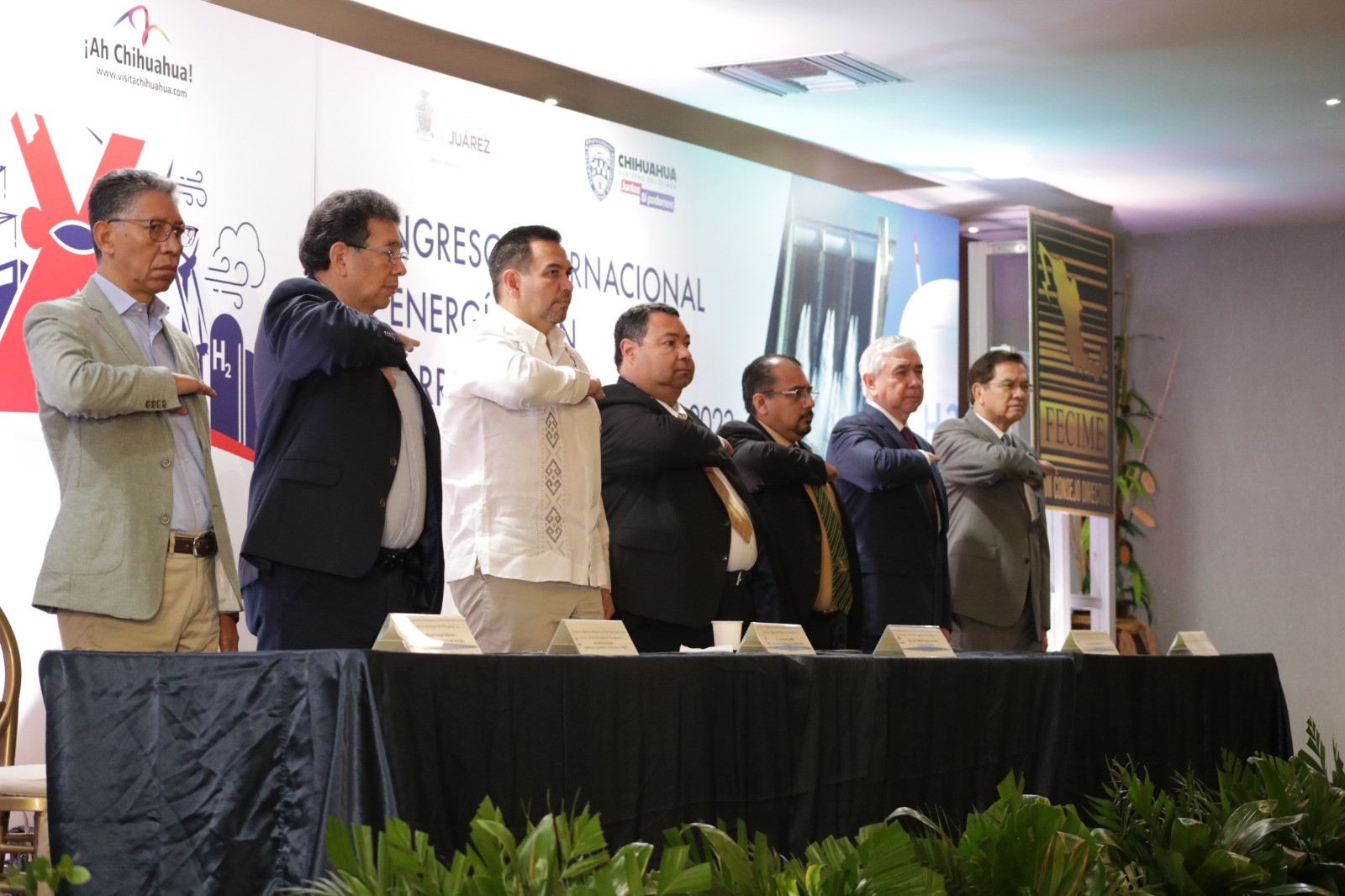 El presidium del evento estuvo integrado por Ernesto Moreno Corzo, presidente de la Federación de Colegios de Ingenieros Mecánicos, Electricistas, Electrónicos y de ramas afines de la República Mexicana (FECIME); Carlos Alberto Yates, presidente del Clúster de Energía del Estado de Chihuahua; Héctor Luis Vargas, representante de la Gerencia de Control Norte del CENACE; Miguel Ángel Morales Mora, director general de Proyectos Estratégicos de la Comisión Reguladora de Energía; Carlos Hernández Ayala, director general de la Agencia Estatal de Desarrollo Energético.