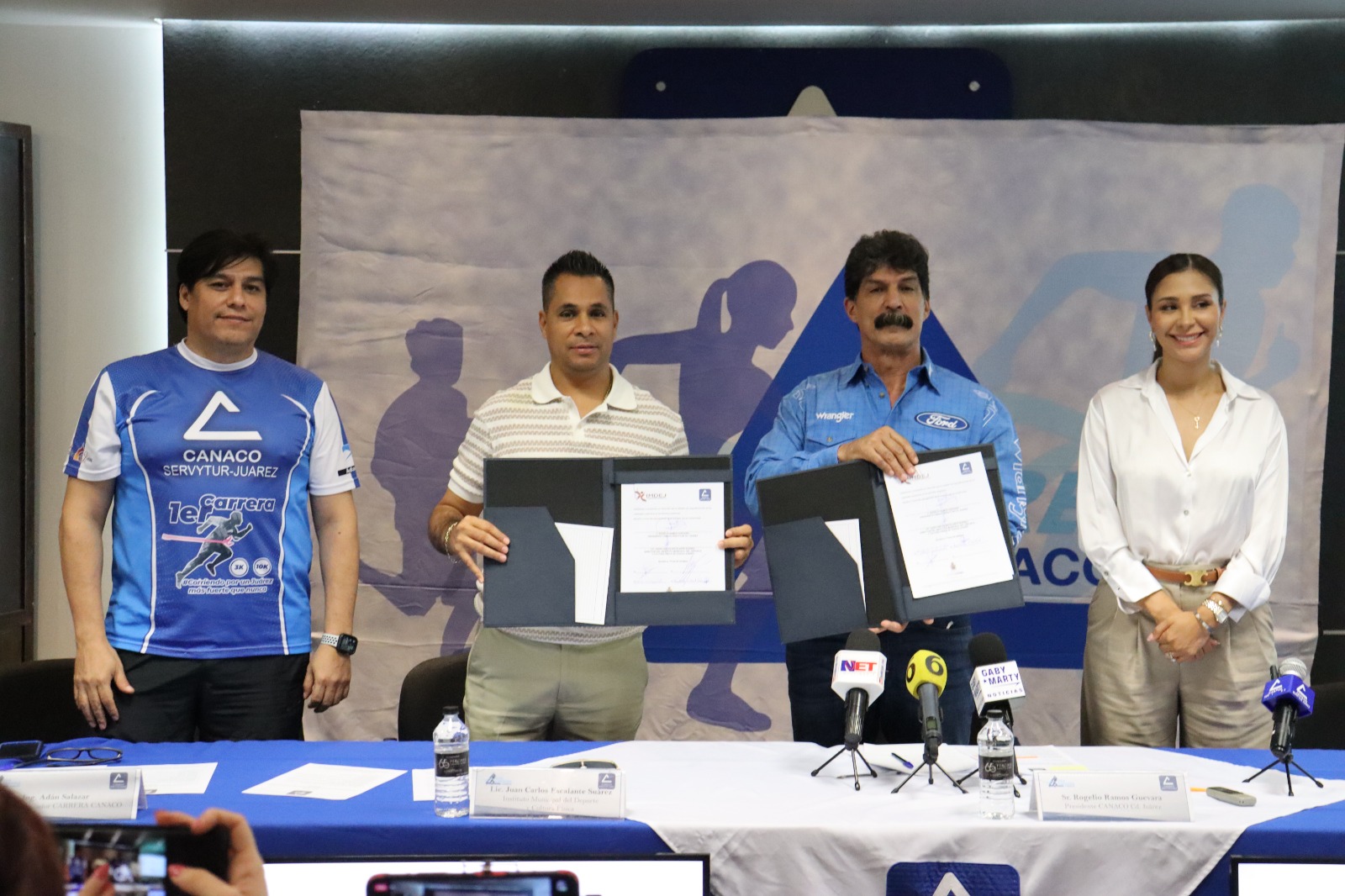 En representación del Presidente Municipal, Cruz Pérez Cuéllar, el director del Instituto Municipal del Deporte y Cultura Física de Juárez, Juan Escalante, informó que se adquirió el compromiso entre el IMDEJ y la Cámara Nacional de Comercio para organizar la competencia, porque es muy importante seguir sumando empresas, instituciones y escuelas que promuevan el deporte en esta frontera.