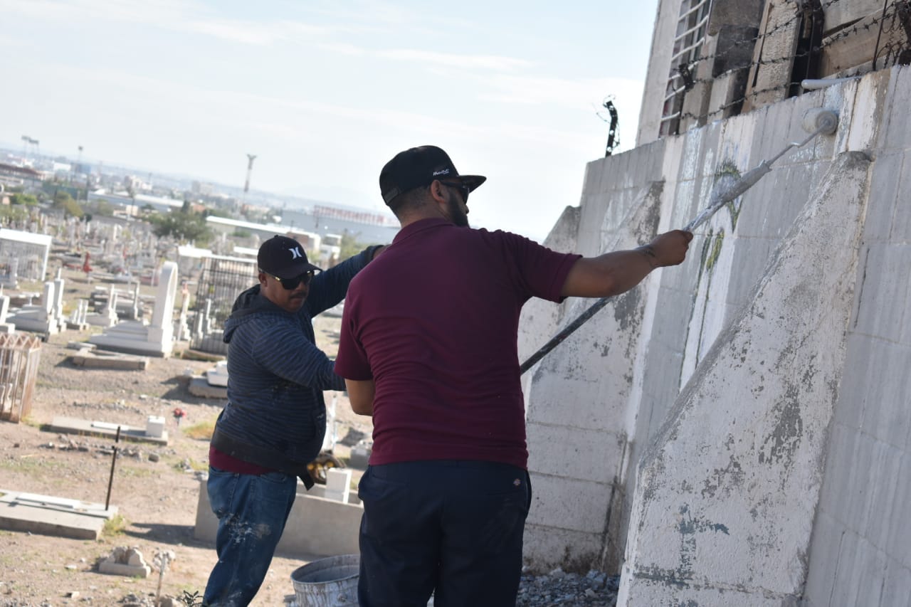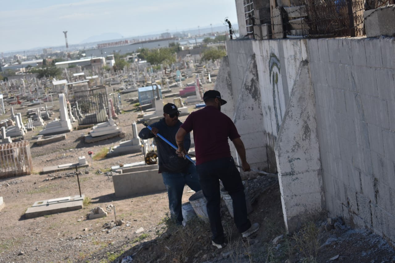 El funcionario comentó que este lunes se trabaja con la cuadrilla antigrafiti, que se encarga de pintar las bardas que resguardan el cementerio, además se reforzarán las acciones con actividades de limpieza.