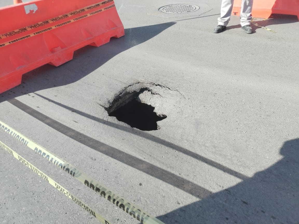 La Coordinación de Seguridad Vial implementó un operativo para desviar la circulación vehicular en la avenida Ejército Nacional, al este de la Tecnológico, frente a la empresa Home Depot, en donde se registró un peligroso hundimiento en el asfalto.