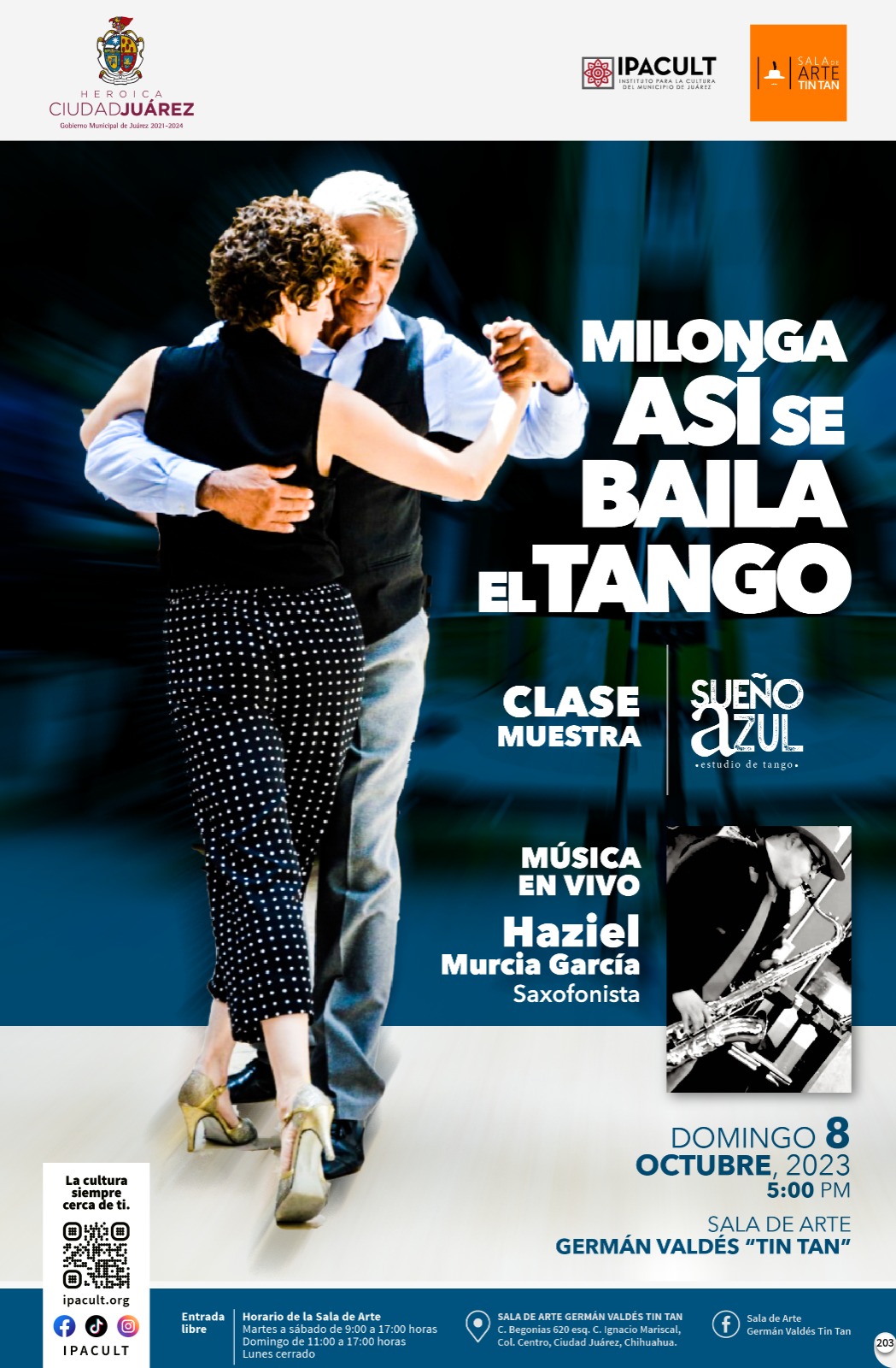 Este próximo domingo 8 de octubre se llevará a cabo ??Milonga, así se baila el tango?, evento en el que la comunidad podrá disfrutar de una tarde de baile y música en vivo en la Sala de Arte Germán Valdés ??Tin Tan?.
