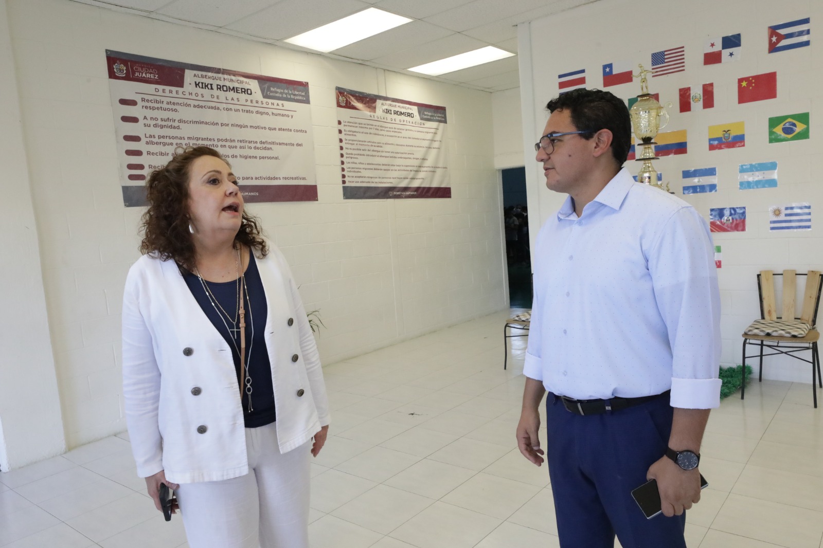 La señora Enríquez y María Constanza Tort recorrieron las instalaciones del albergue, lugar que ha tenido distintas mejoras con el objetivo de dar un espacio adecuado para la atención de las y los menores migrantes.