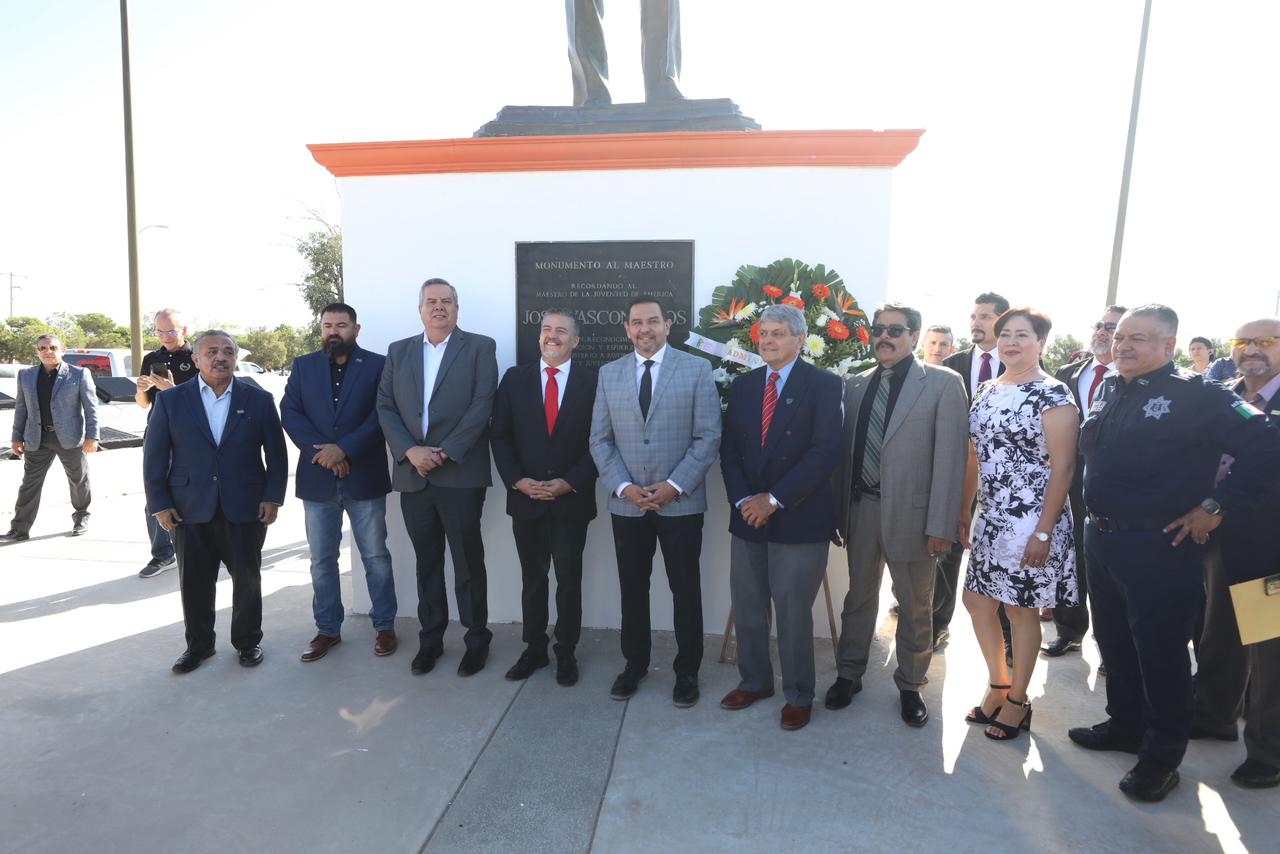 Como parte de la ceremonia le fue entregado un reconocimiento por su labor y develó la placa en la Rotonda del Maestro Ilustre, donde colocaron una ofrenda floral en el monumento a José Vasconcelos.