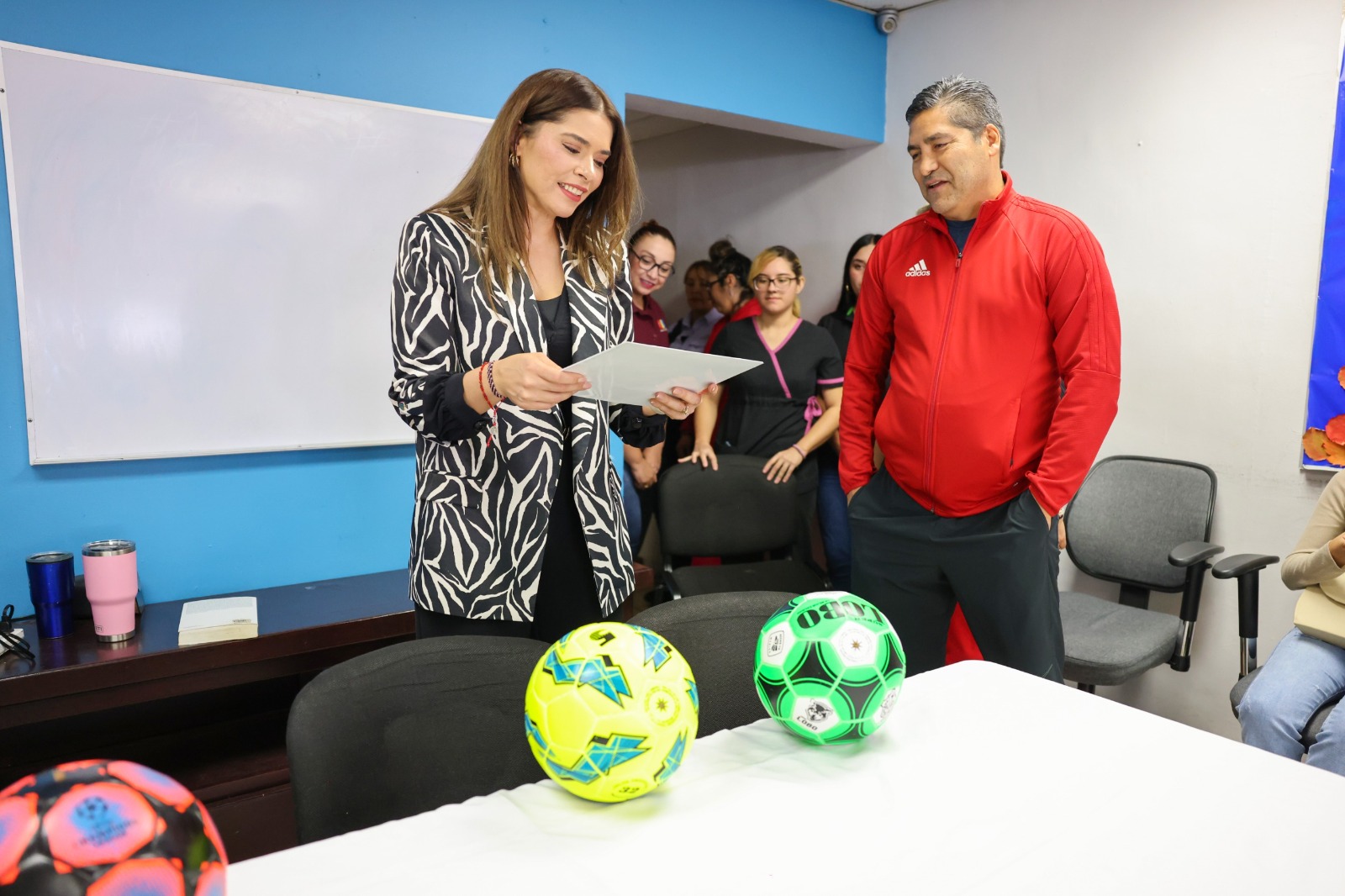Playeras, calcetas, balones y guantes de portero fue lo que recibieron los menores del albergue y que les servirá para seguir disfrutando de este deporte.