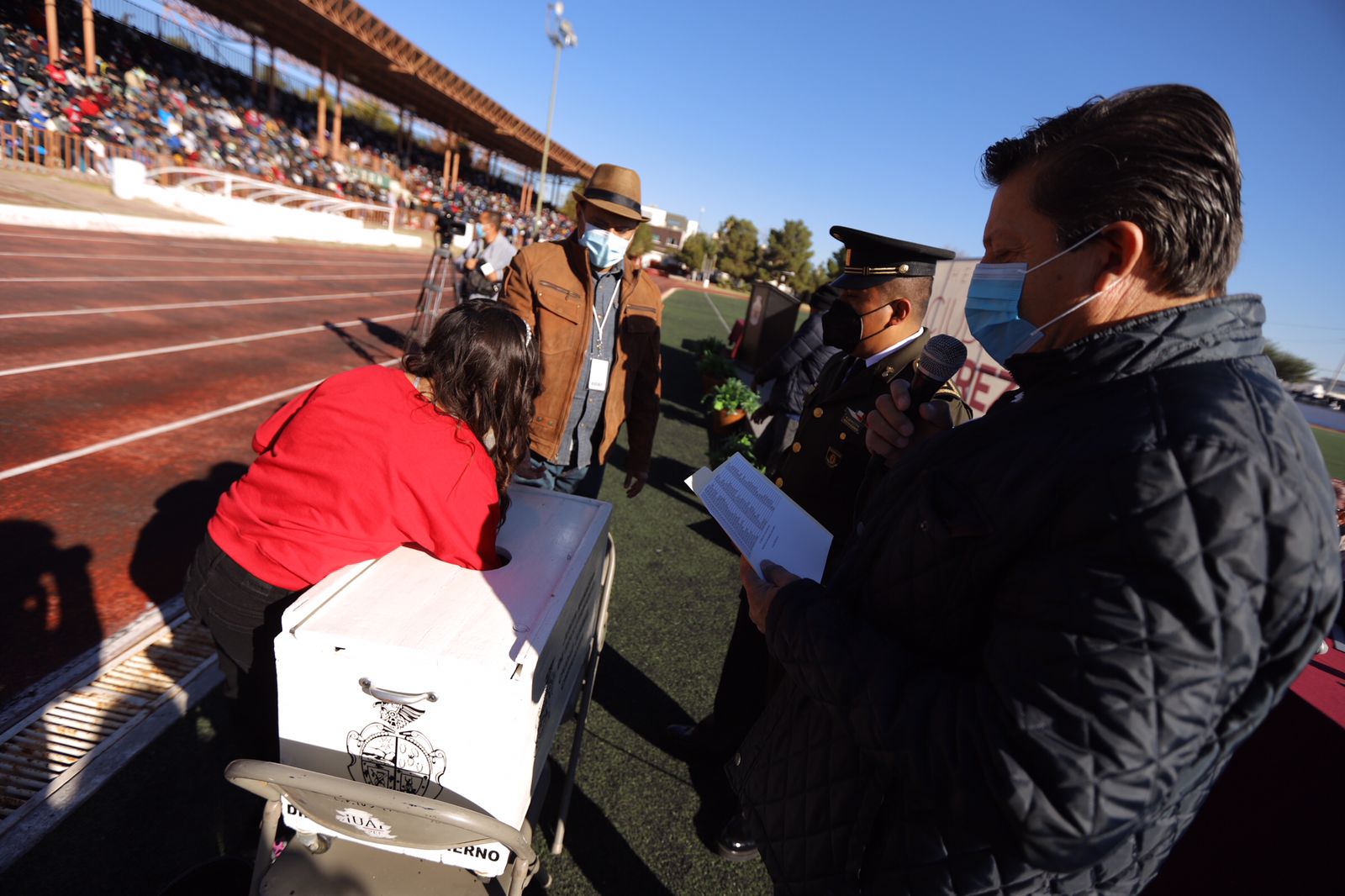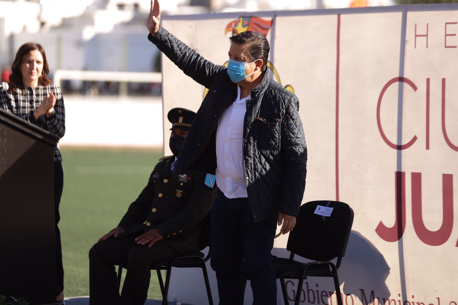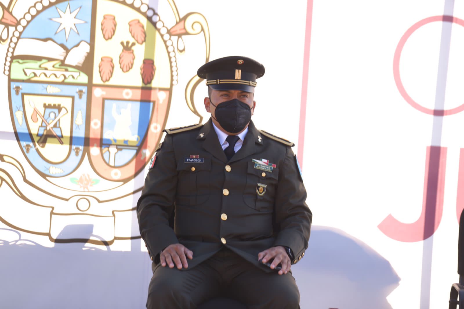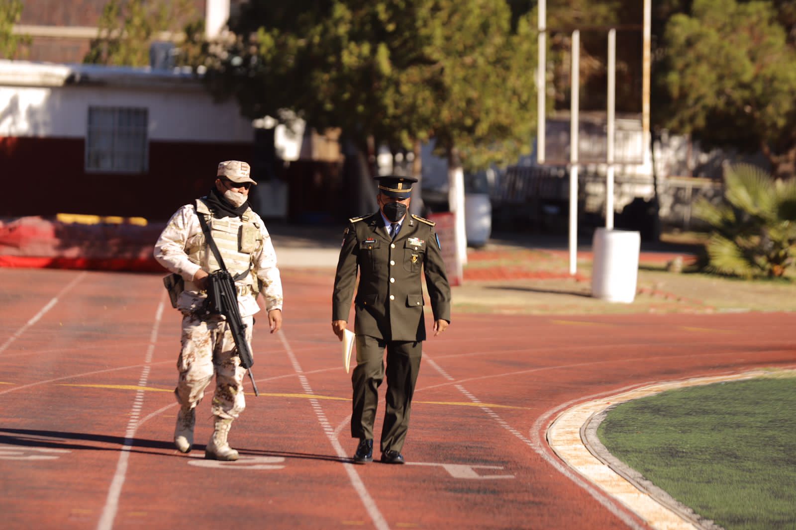 El director de Gobierno del Ayuntamiento de Juárez, Pedro Martínez Chairez en representación del Presidente Municipal Cruz Pérez Cuellar encabezó el acto junto con el teniente de Materiales de Guerra, Florentino Jesús Francisco Mariano, representante del 9º Regimiento de Caballería Motorizada.