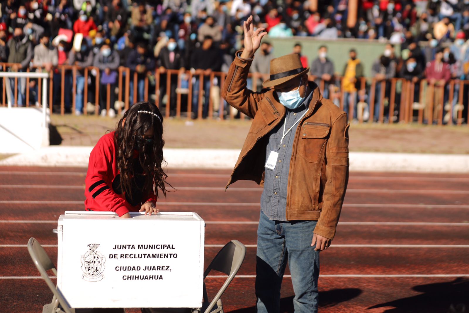 Los jóvenes fueron citados en las instalaciones del estadio 20 de Noviembre en la colonia Partido Romero donde autoridades militares y del Ayuntamiento realizaron el tradicional sorteo de bola blanca para Encuadrados y bola negra en Disponibilidad.
