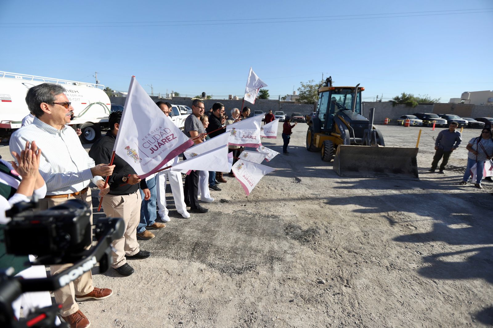 Este día el Presidente Municipal, Cruz Pérez Cuéllar, dio el banderazo de arranque a la pavimentación del estacionamiento contiguo al Hospital General Regional 66 del Instituto Mexicano del Seguro Social, administrado por la Operadora Municipal de Estacionamientos de Juárez (OMEJ).