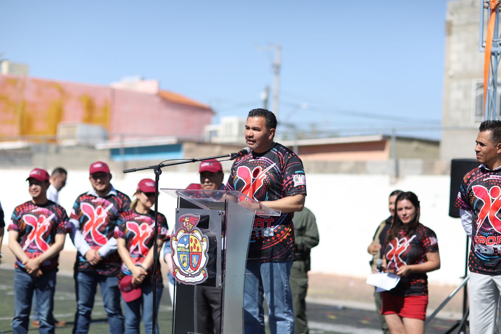 El director del Instituto Municipal del Deporte y Cultura Física de Juárez, Juan Escalante, agradeció al Presidente Municipal, Cruz Pérez Cuéllar y a la presidenta del DIF Municipal, Rubí Enríquez, por hacer esto posible en beneficio de más de 4 mil 500 niños y niñas del suroriente de la ciudad.