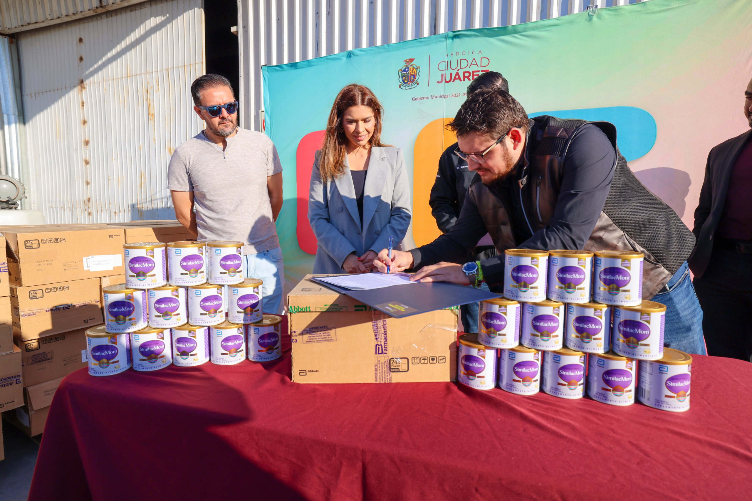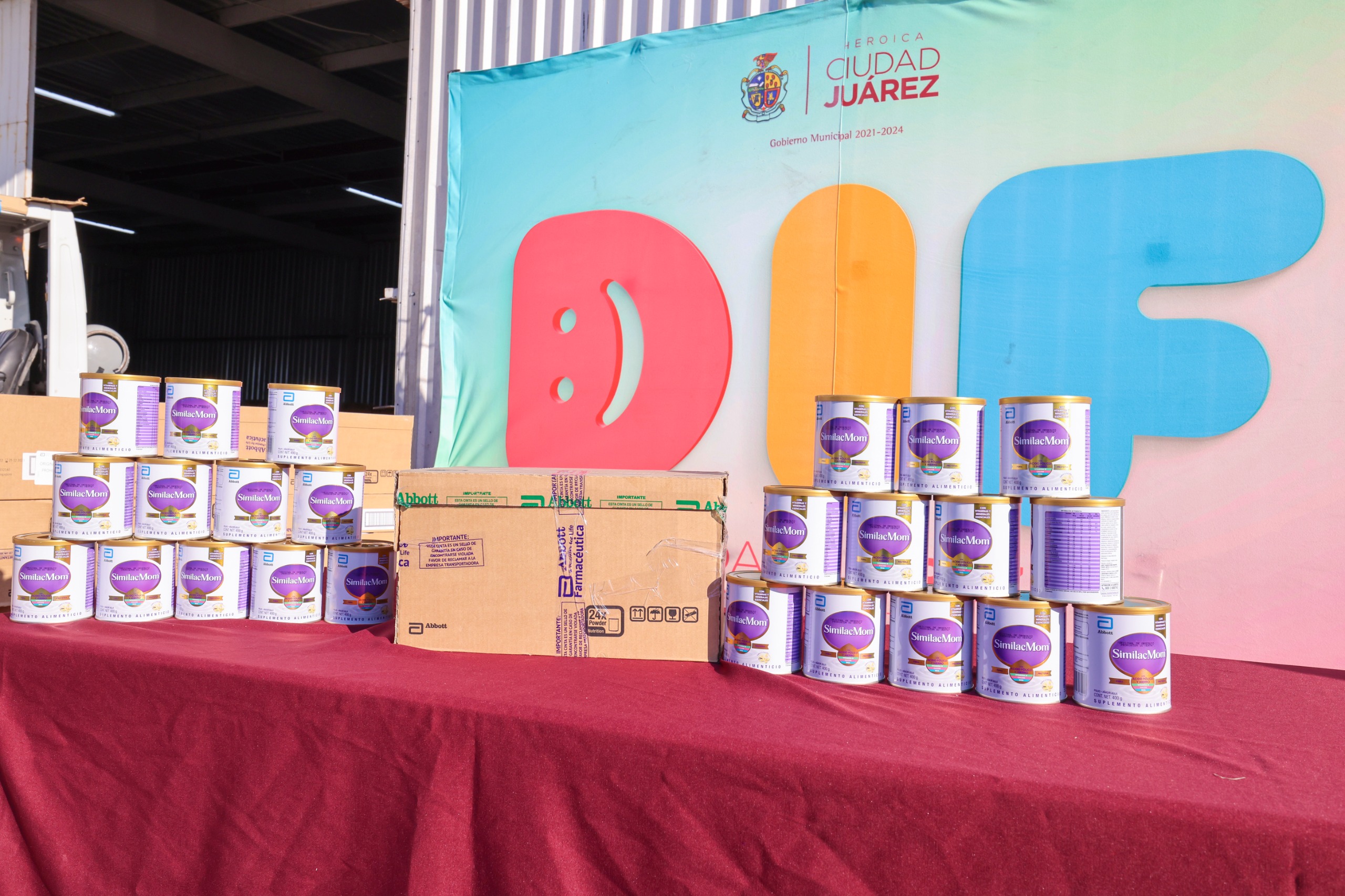 La presidenta del Sistema para el Desarrollo Integral de la Familia del Municipio (DIF), Rubí Enríquez, recibió un donativo de 5 mil latas del suplemento alimenticio SimilacMom por parte del Banco de Medicamentos de la Fundación Nexum Médica.