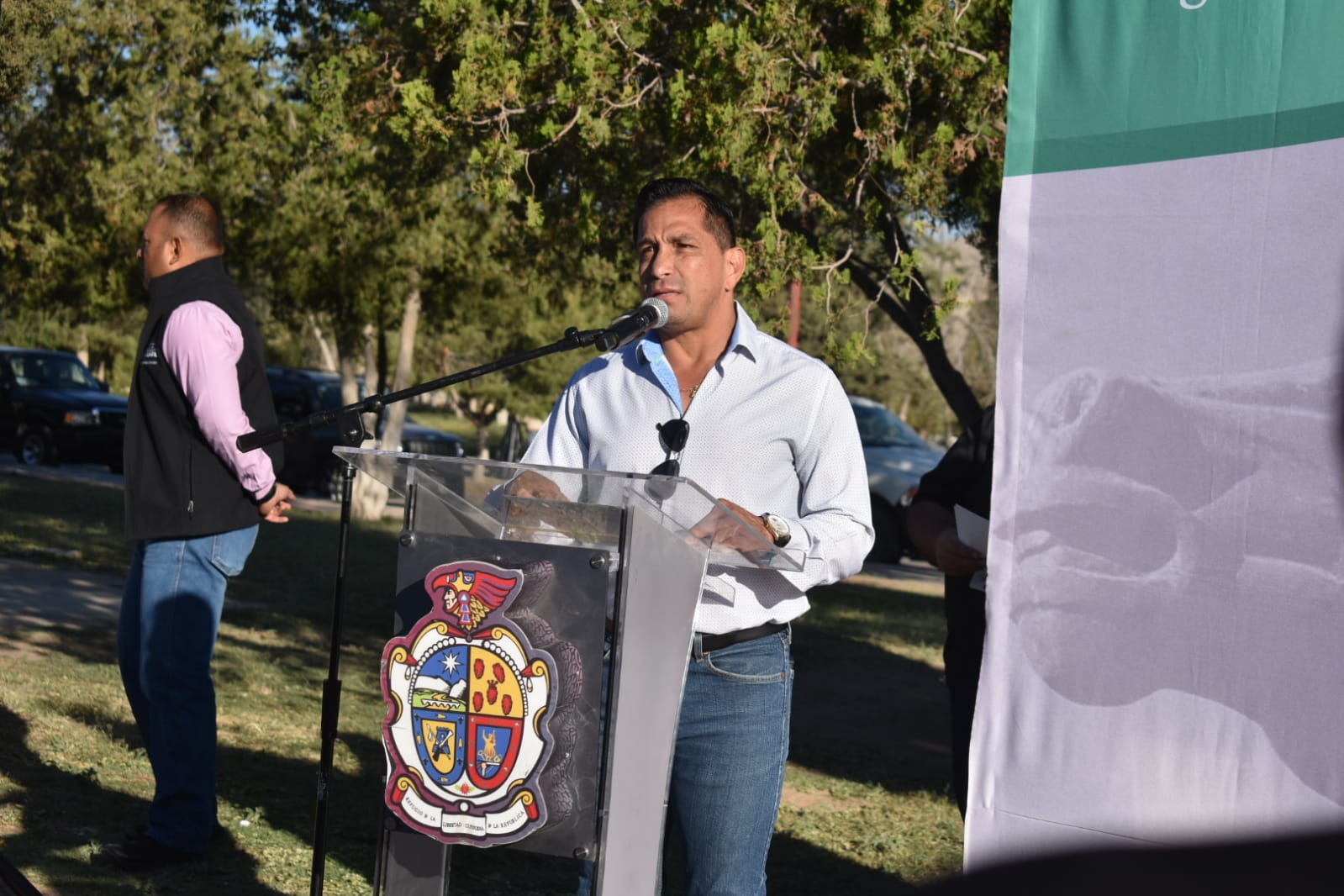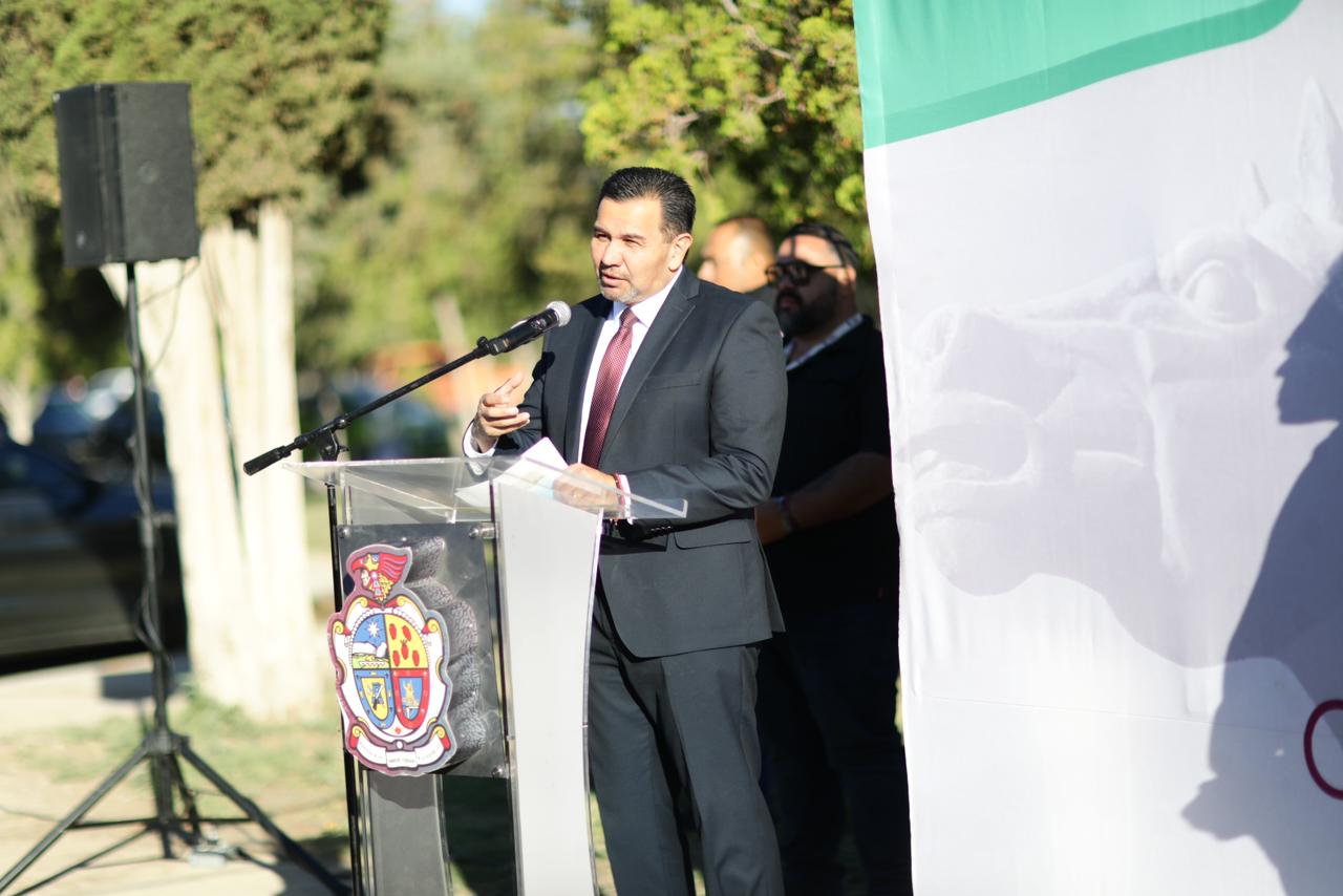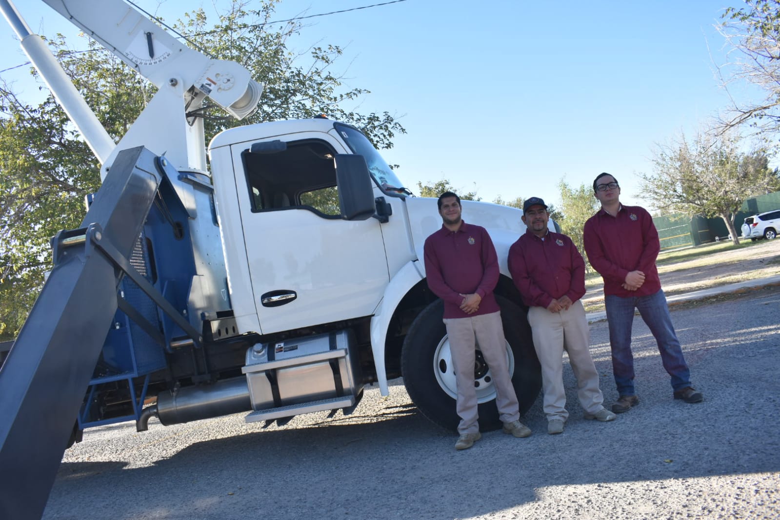 ??Que los juarenses sepan que seguimos equipando a la ciudad, con unidades que sirven para los trabajos operativos, como esta grúa y que son propiedad del Gobierno Municipal, es decir, se queda en la ciudad, es mucho mejor comprar y que sea de nosotros que arrendar?, comentó el edil en la ceremonia efectuada frente al Museo de Arqueología e Historia de El Chamizal.