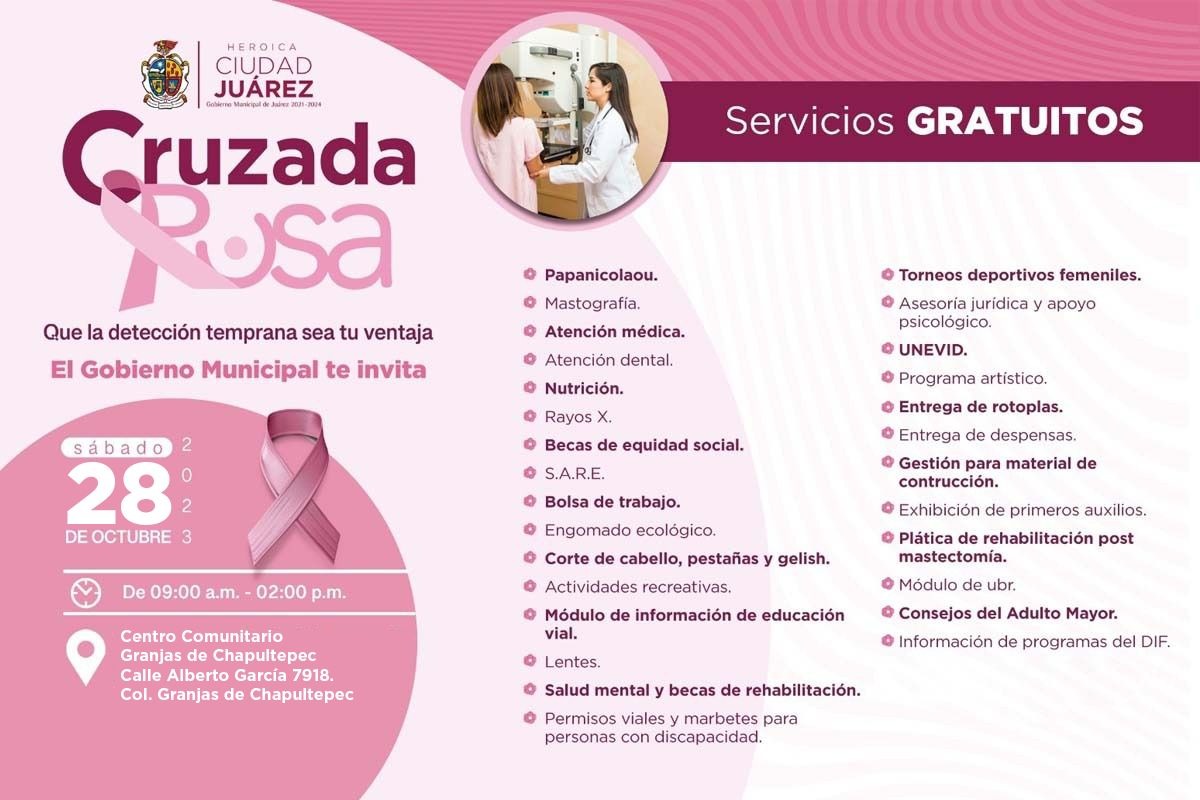 Con el fin de acercar los servicios y programas sociales a la ciudadanía, la Dirección General de Desarrollo Social, tomará solicitudes de material para construcción y apoyo de impermeabilizante durante la Cruzada Rosa que se llevará a cabo este sábado 28 de octubre.