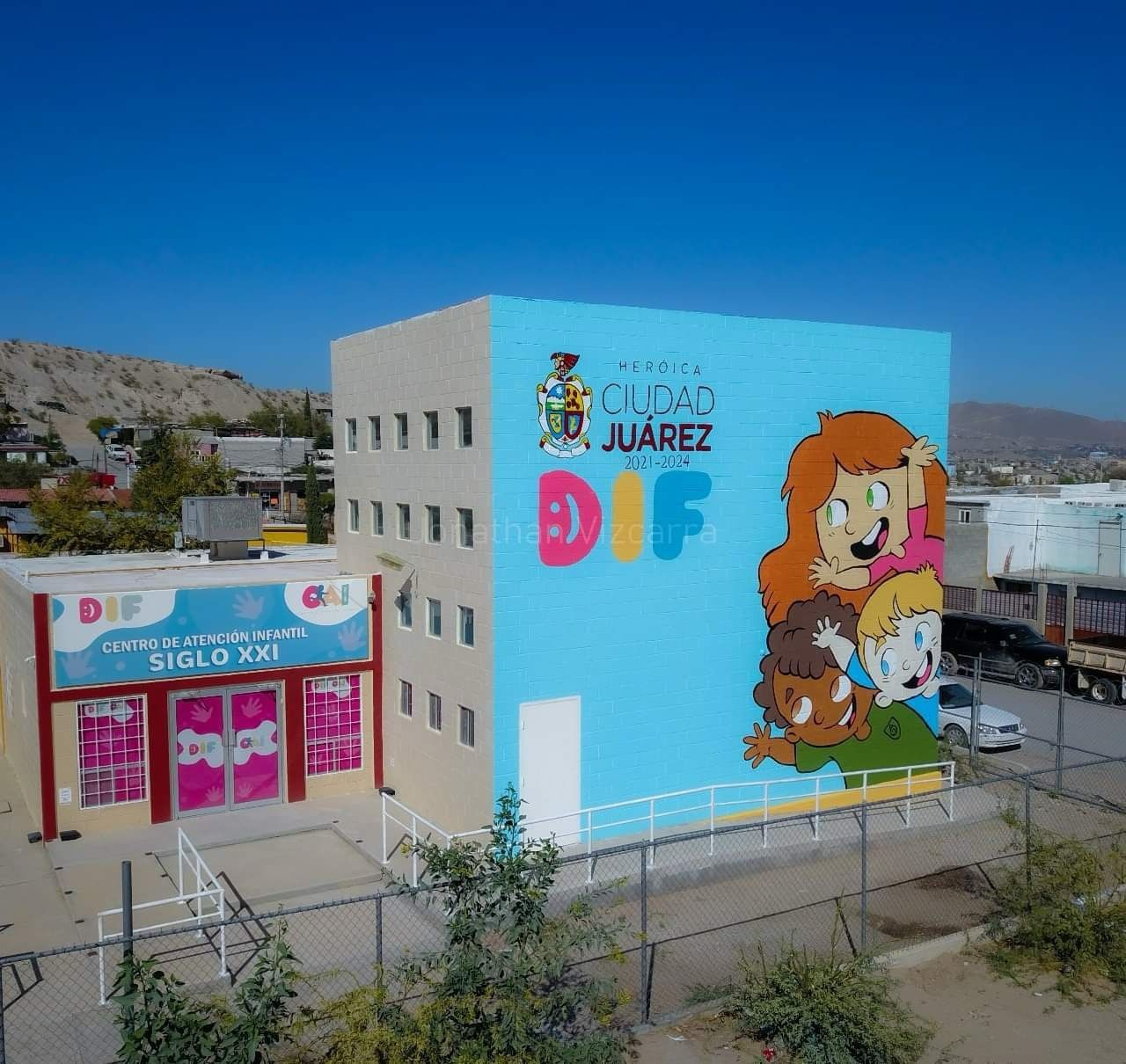 Con un hermoso mural que plasma la niñez juarense, el pintor Jonathan Fernández Vizcarra le dio color al Centro de Atención Infantil (CAI) Siglo XXI.