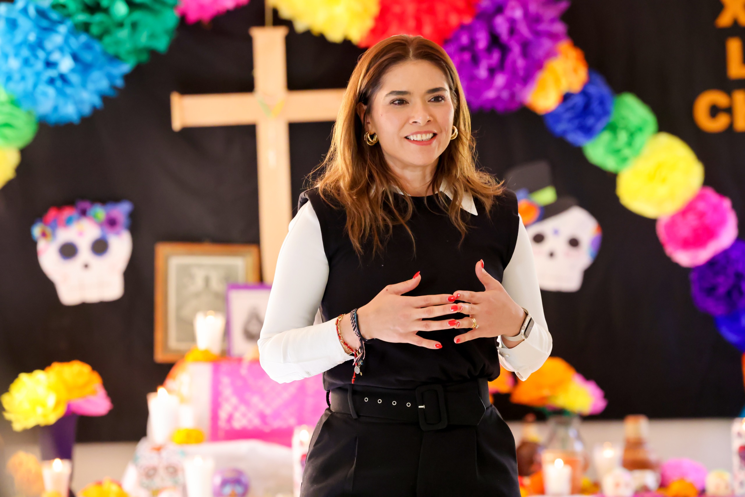 "Muchas gracias por hacer esto posible, a mí me emociona mucho que se sigan las tradiciones mexicanas y recordar a nuestros santos difuntos es lo que debemos hacer porque nos da paz?, mencionó Enríquez durante el evento.