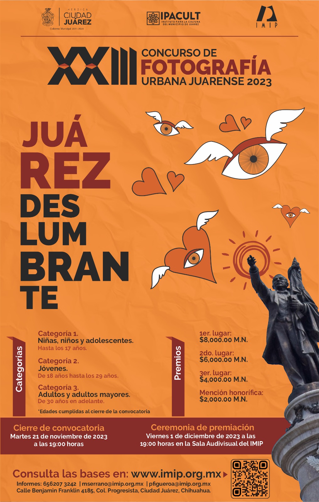 El Instituto Municipal de Investigación y Planeación (IMIP), mantiene abierta la convocatoria de su vigésimo tercer Concurso de Fotografía Urbana Juarense 2023, por lo que se extendió una invitación a la comunidad para registrarse y participar con su mejor fotografía.