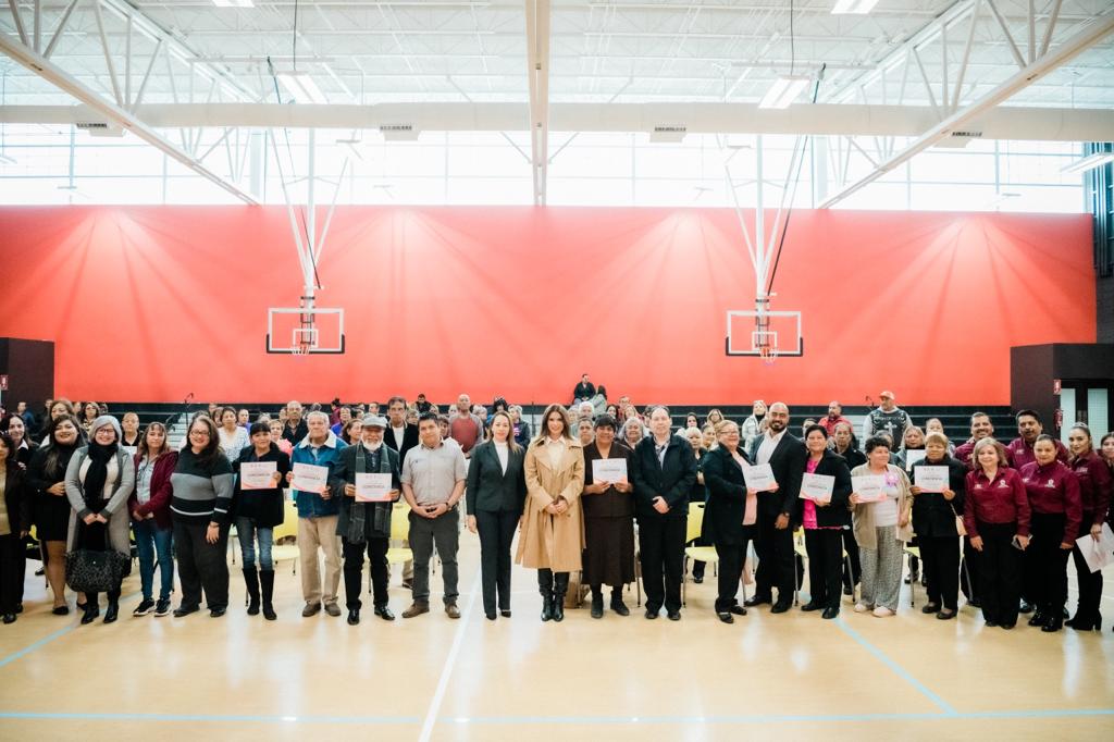 ??A mí me da muchísima alegría que en esta ocasión, quienes están recibiendo este reconocimiento por haber terminado su taller, su primaria y escuela secundaria son las personas mayores?, añadió la presidenta del DIF Municipal.