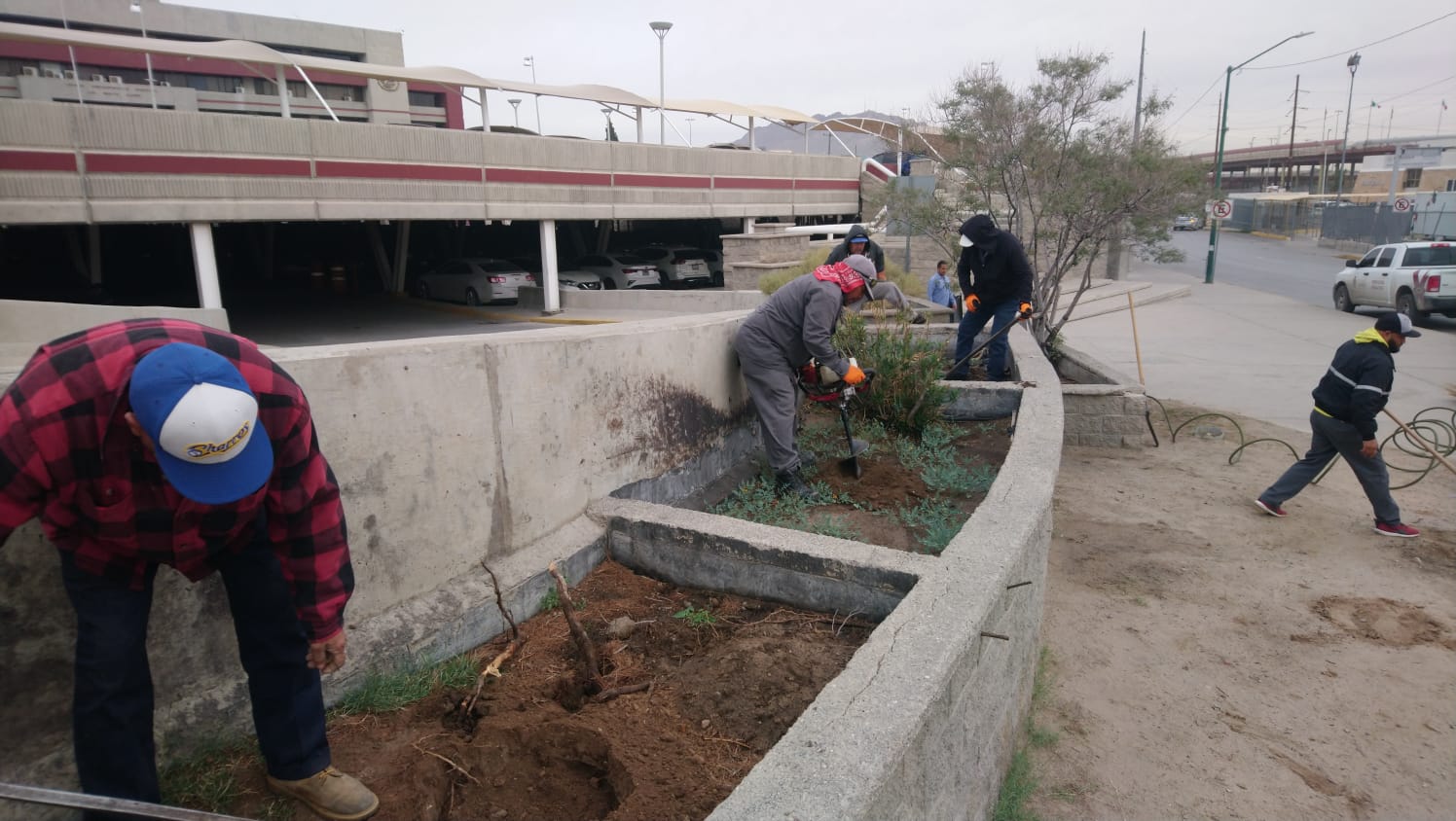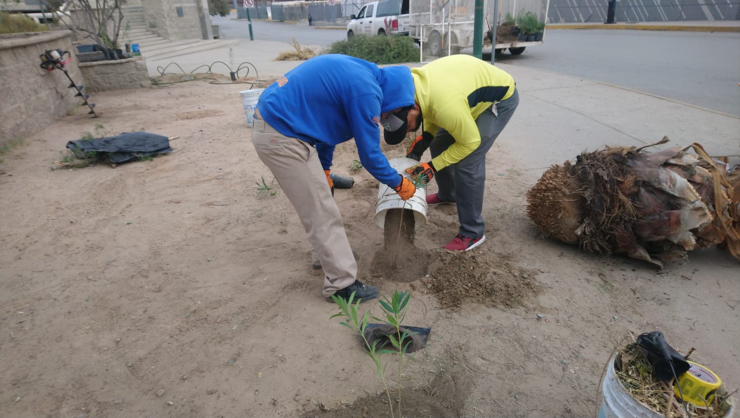 Personal de la Dirección de Parques y Jardines llevó a cabo la plantación de 15 árboles en las jardineras de la Unidad Administrativa ??Lic. Benito Juárez? (Presidencia municipal), con el objetivo de mejorar el entorno del lugar.