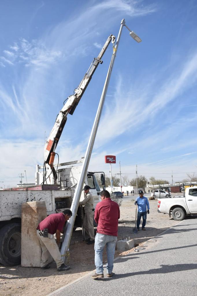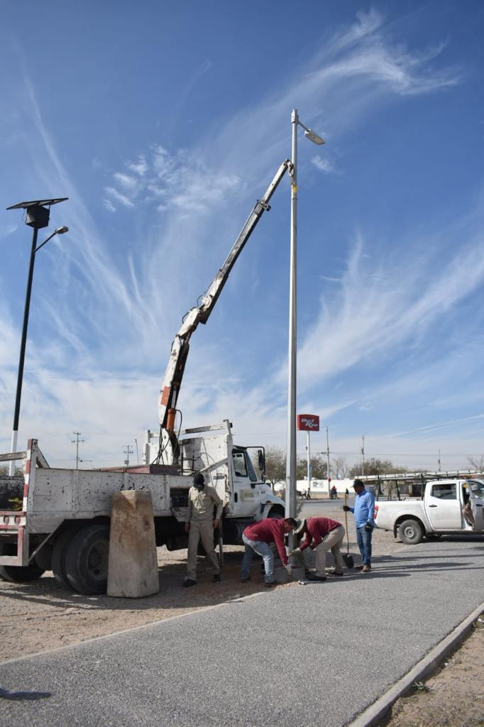 El funcionario destacó que es una colonia que se ha detectado con mucha necesidad, por lo que se trabaja de manera intensiva con unidades grandes de la dependencia para retirar el escombro y tierra en un terreno de la calle Leonardo Solís Barraza, así como con grúas de fuerza para instalar arbotantes de alumbrado público en los lugares faltantes.