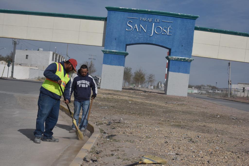 Como parte de los trabajos de mejoras a los sectores donde se lleva a cabo la Cruzada por Juárez, empleados de la Dirección General de Servicios Públicos mantienen un operativo en el fraccionamiento Parajes de San José y en las colonias aledañas.